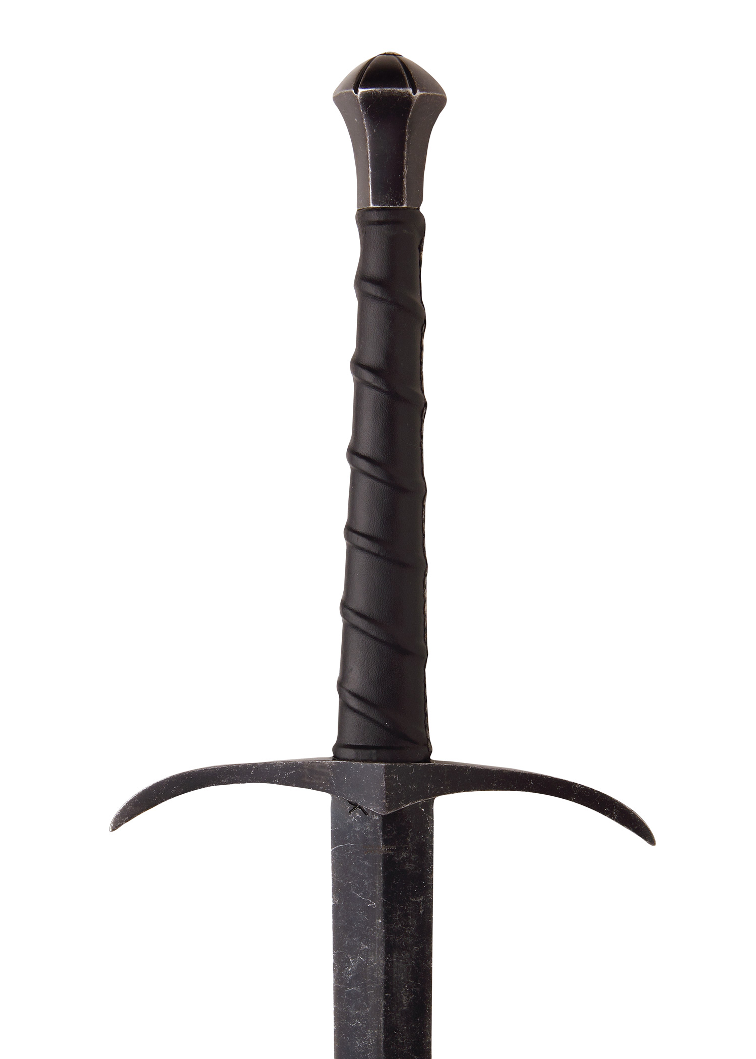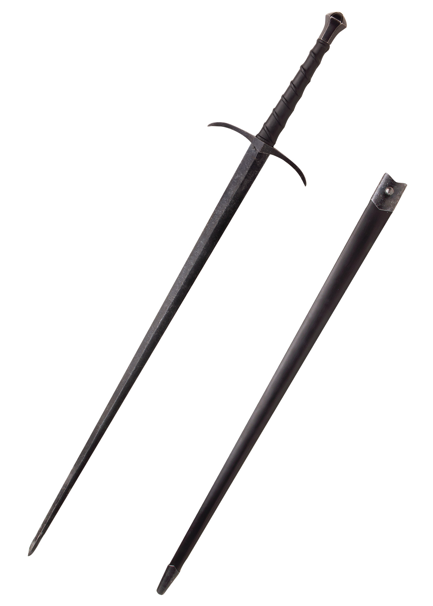 Treffend benannt nach der blutigen Schlacht während des Rosenkrieges im späten 15. Jahrhundert, ist das Bosworth ein schnelles und fähiges Kriegsschwert, das geschickt die tödlichen Mastercut-Techniken ausführen kann, die so eng mit den zweihändigen Klingen dieser Zeit verbunden sind. Mit einem schlanken Griff, der geradezu darum bettelt, in den vielfältigen und effektiven Windungen gegriffen zu werden, die diese Art von Schwert idealerweise erlaubte, hat es ein überraschend geringes Gewicht für seine Größe. Diese ebenholzfarbene Königin der Waffen ist perfekt geeignet für den Fußkampf, das richterliche Duell oder die ritterliche Herausforderung. Sie ist eine substanzielle und anmutige Waffe, die ihrem Träger das Vertrauen gibt, dass sie das Leben verteidigen kann, wenn sie gebraucht wird. Entdecken Sie mit ihm, warum diese Form des Langschwerts jahrhundertelang respektiert und gegen alles, was ihm begegnet, gefeiert wurde.