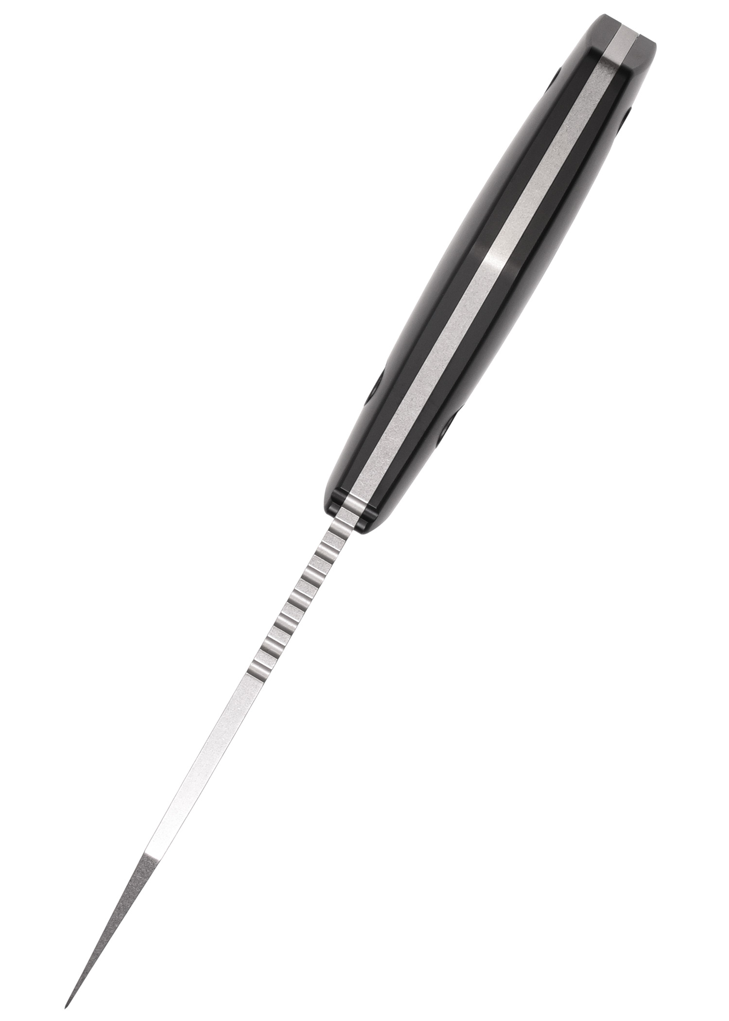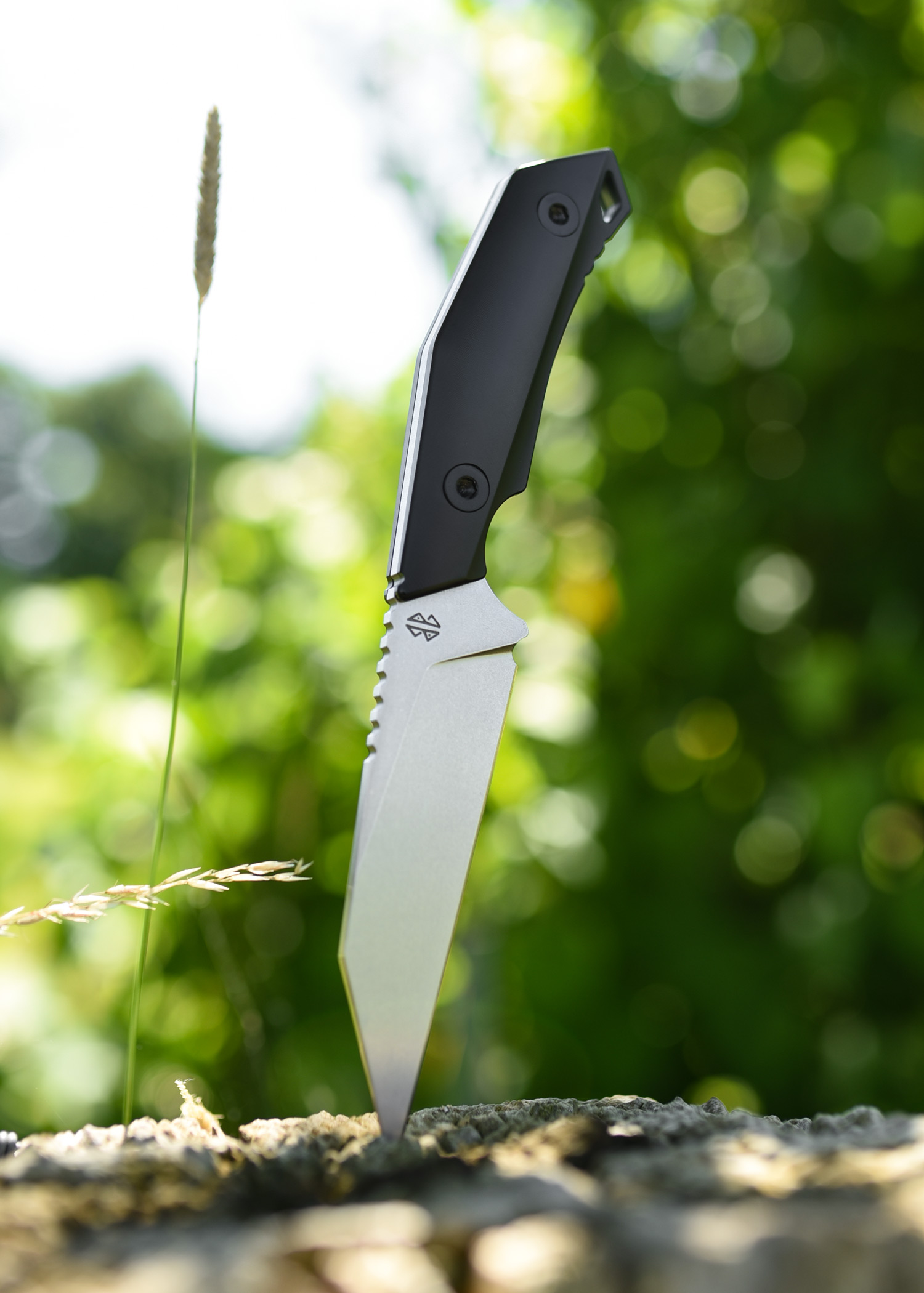 Das dritte Modell in unserem Sortiment ist das THARN. Es ist ein kompaktes, feststehendes und EDC-taugliches Messer, das ebenso wie das RAK und das YARR über eine Wikinger-Sax-Klinge verfügt, jedoch von mittlerer Größe ist und eine balastungsstabile Spitze für alltäglich anfallende Schneidaufgaben hat. Dieses Modell rundet die Serie zwischen dem kleinen RAK und dem großen beeindruckenden YARR ab und macht das Trio infernal komplett.