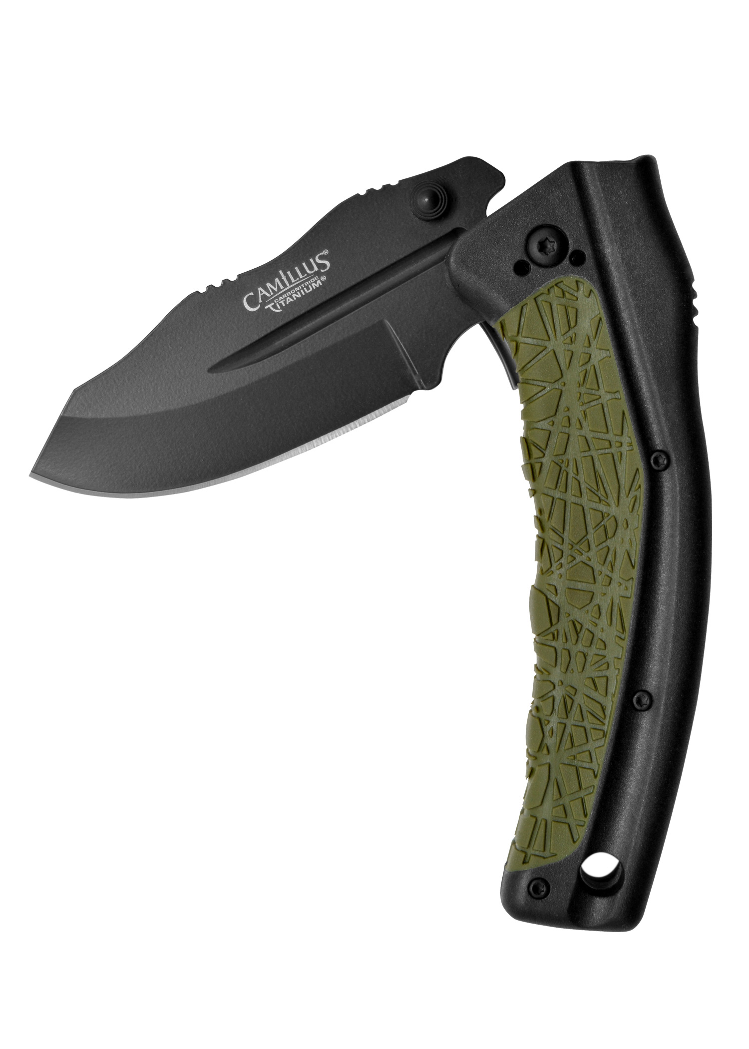 Das Camillus CHASSE misst im ausgeklappten Zustand 19,1 cm. Die 7,6 cm lange Drop Point-Klinge im Hohlschliff mit durchgängiger Hohlkehle aus hochwertigem AUS-8 Stahl ist mit einer speziellen Carbonitride Titanium-Beschichtung veredelt. So sind Korrosionsbeständigkeit und eine besondere Härte garantiert. AUS-8 Stahl wird in Japan hergestellt ist korrosionsbeständig, zäh, schnitthaltig und leicht zu schärfen. Das Arbeitsmesser ist durch Fingerflipper, Daumenpin und das kugellagerunterstützte Schnellöffnungssystem leicht und schnell zu öffnen und wird mit einer Liner-Lock-Arretierung gesichert. Eine übergroße Lasche am Liner Lock erleichtert das Lösen der Klingenverriegelung und kann sogar mit Handschuhen bedient werden.