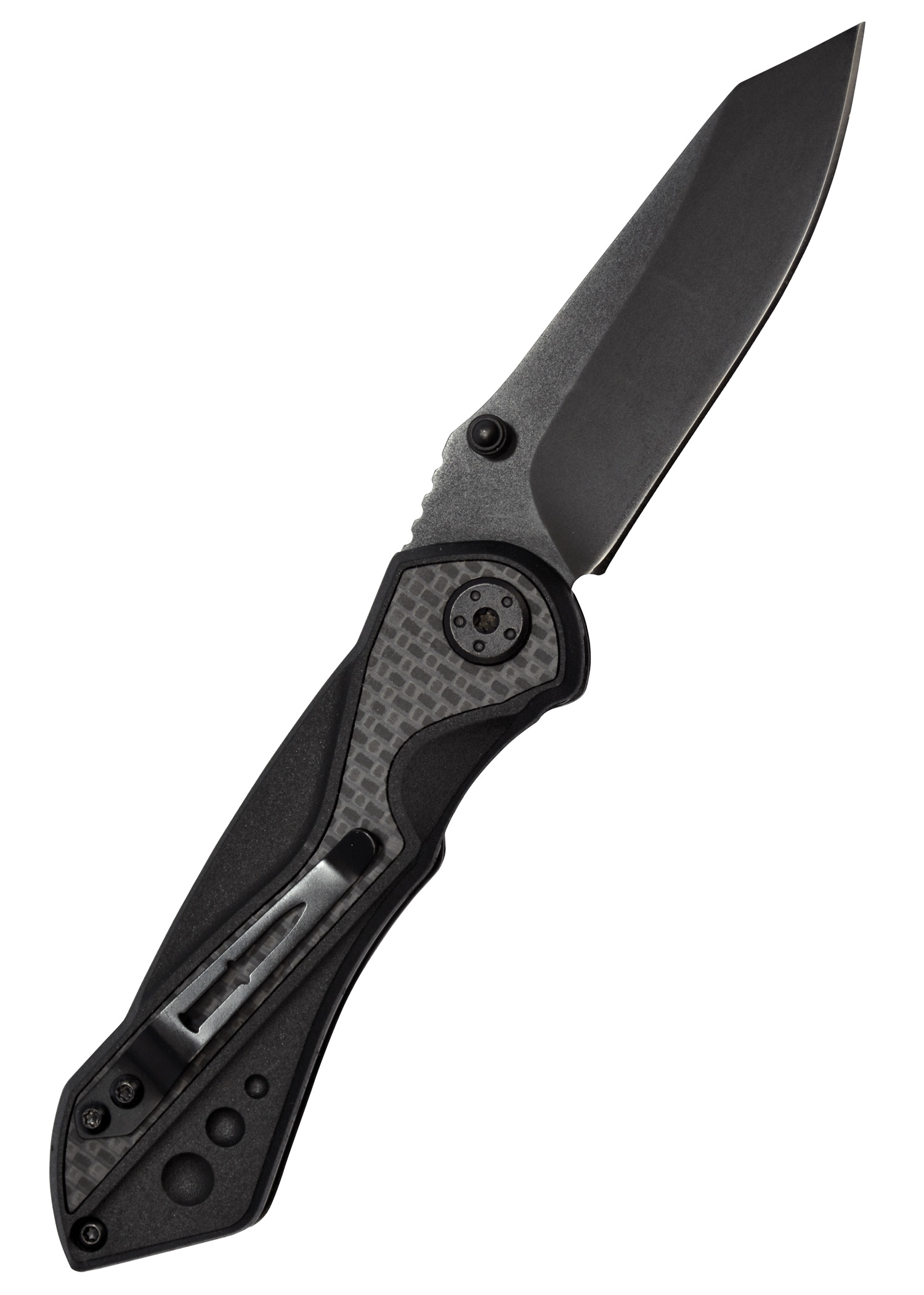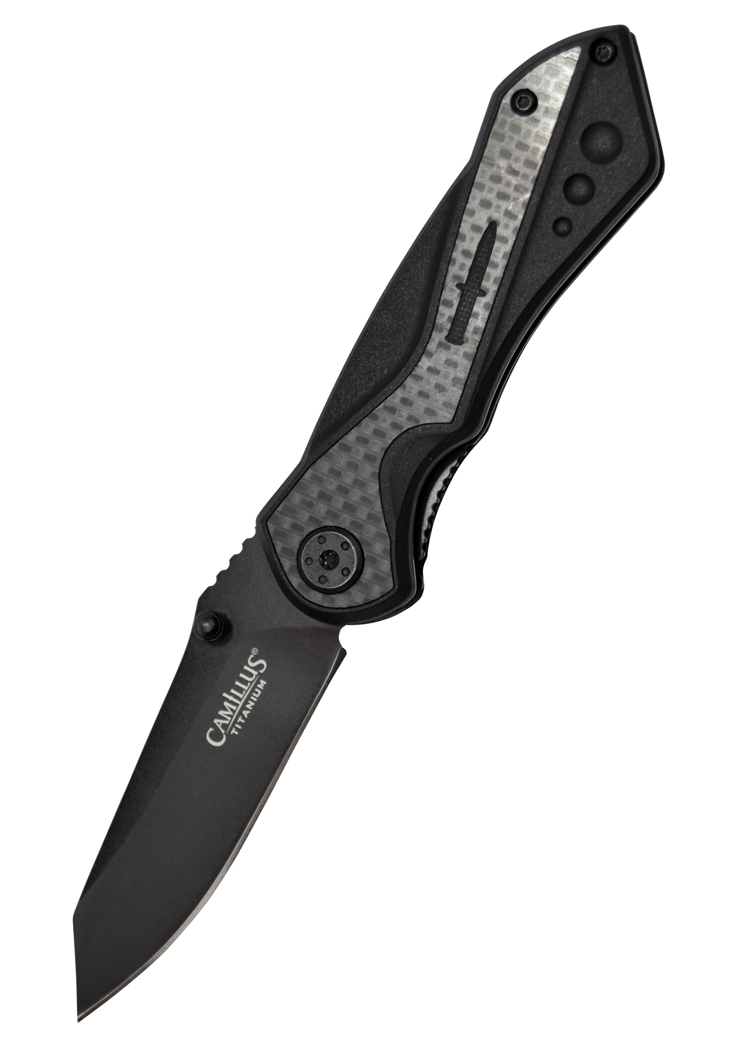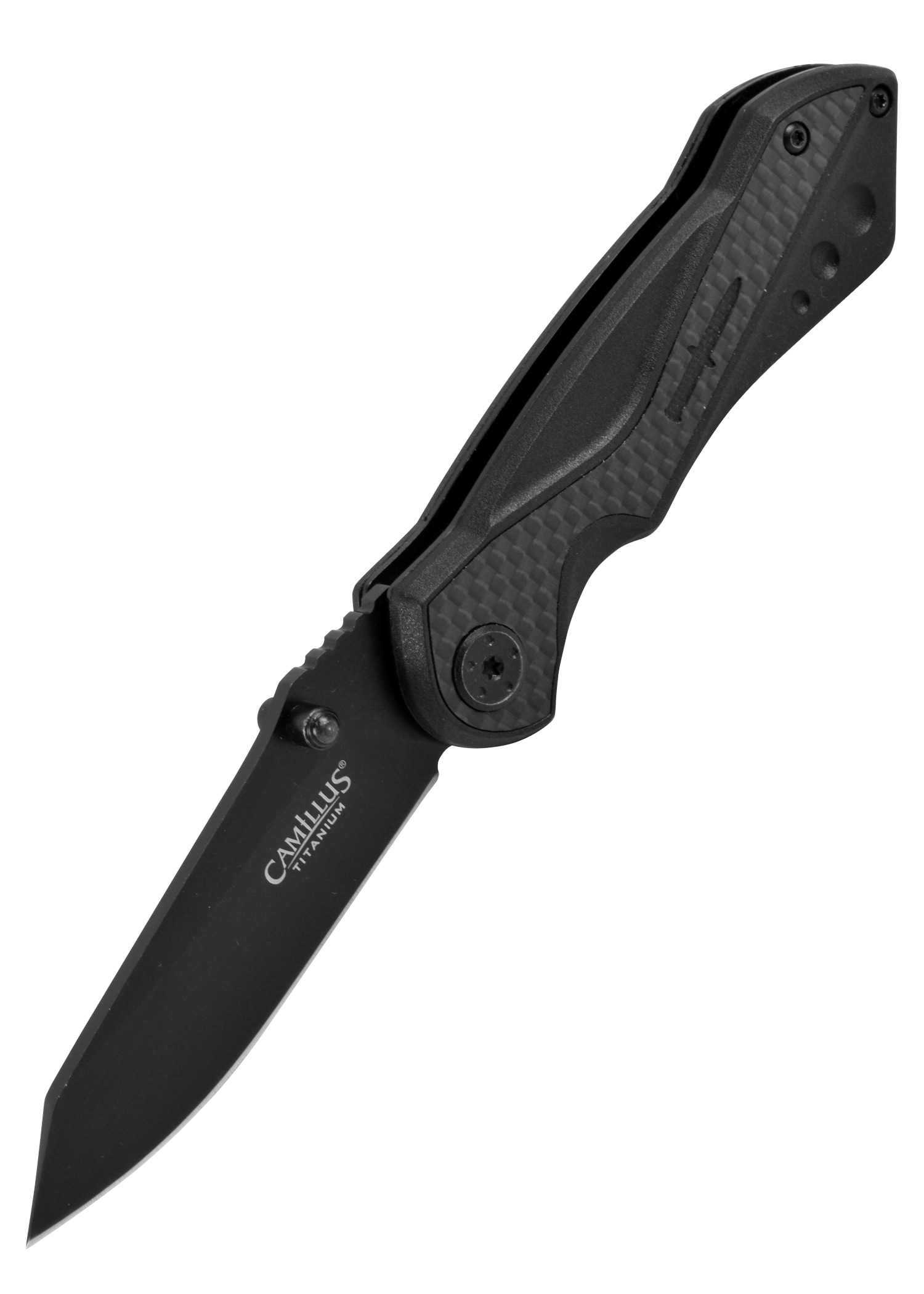 Das Camillus MACHINE Klappmesser ist geöffnet 17 cm lang. Die schwarze Drop-Point AUS-8 Stahlklinge ist 7 cm lang und dank der Carbonitride Titanium Veredelung besonders hart und korrosionsbeständig. Beim schnellen Öffnen mit den beidseitigen Öffnungspins hilft das Robo Quick Launch Linkage System, verriegelt wird die Klinge per Liner-Lock Arretierung. Der ergonomische Griff ist aus aufgerautem GFN (glasfaserverstärktes Nylon) und eingelegten Carbonfaserplatten gefertigt und verfügt über Fingermulden und einen schwarzen Gürtelclip aus Edelstahl zur Befestigung. Das solide Camillus MACHINE Messer eignet sich sowohl für den täglichen Gebrauch, als auch für den Einsatz beim Camping oder Wandern.