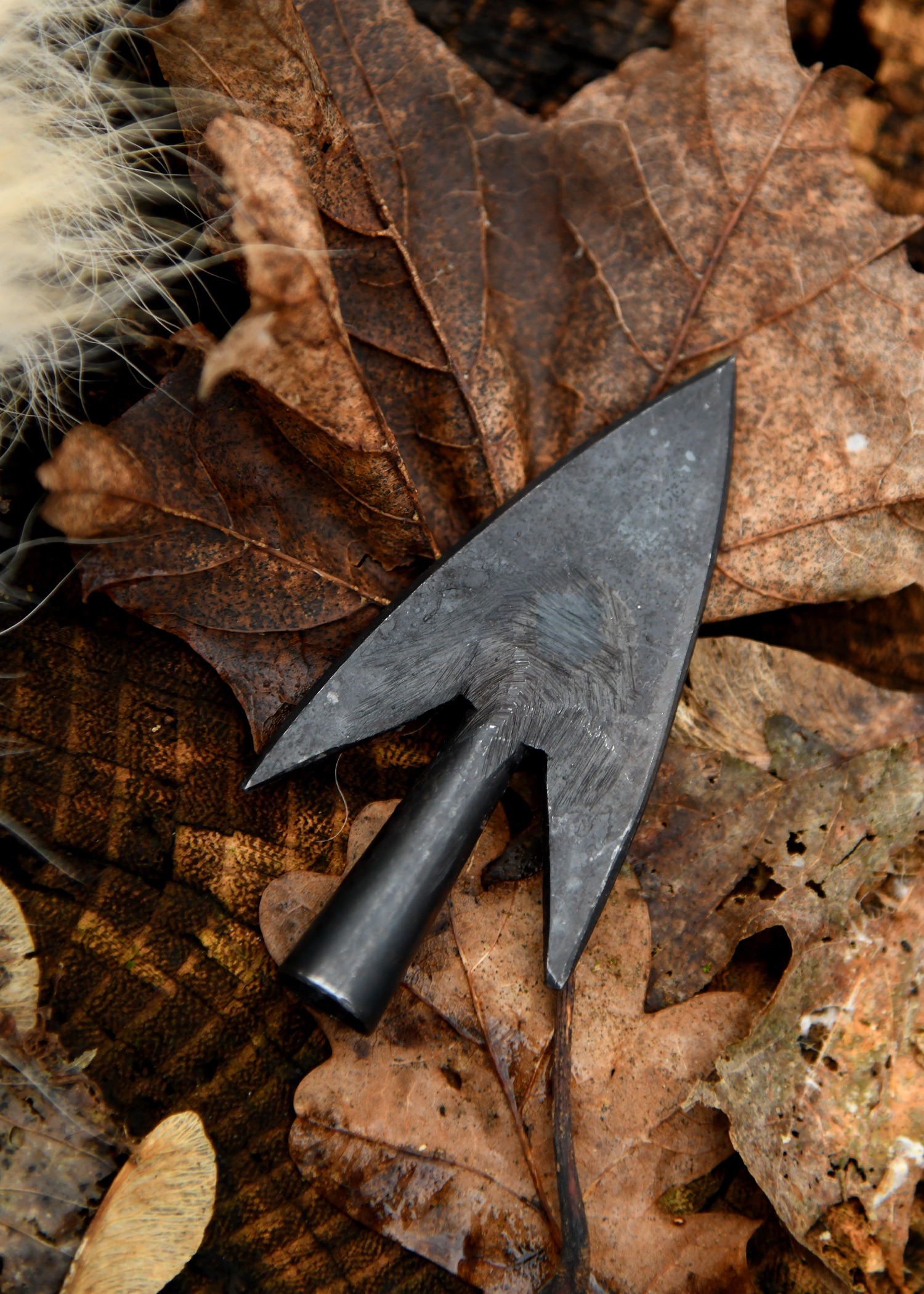 Handgeschmiedete Pfeilspitze aus hochwertigem Kohlenstoffstahl für historische Pfeile.