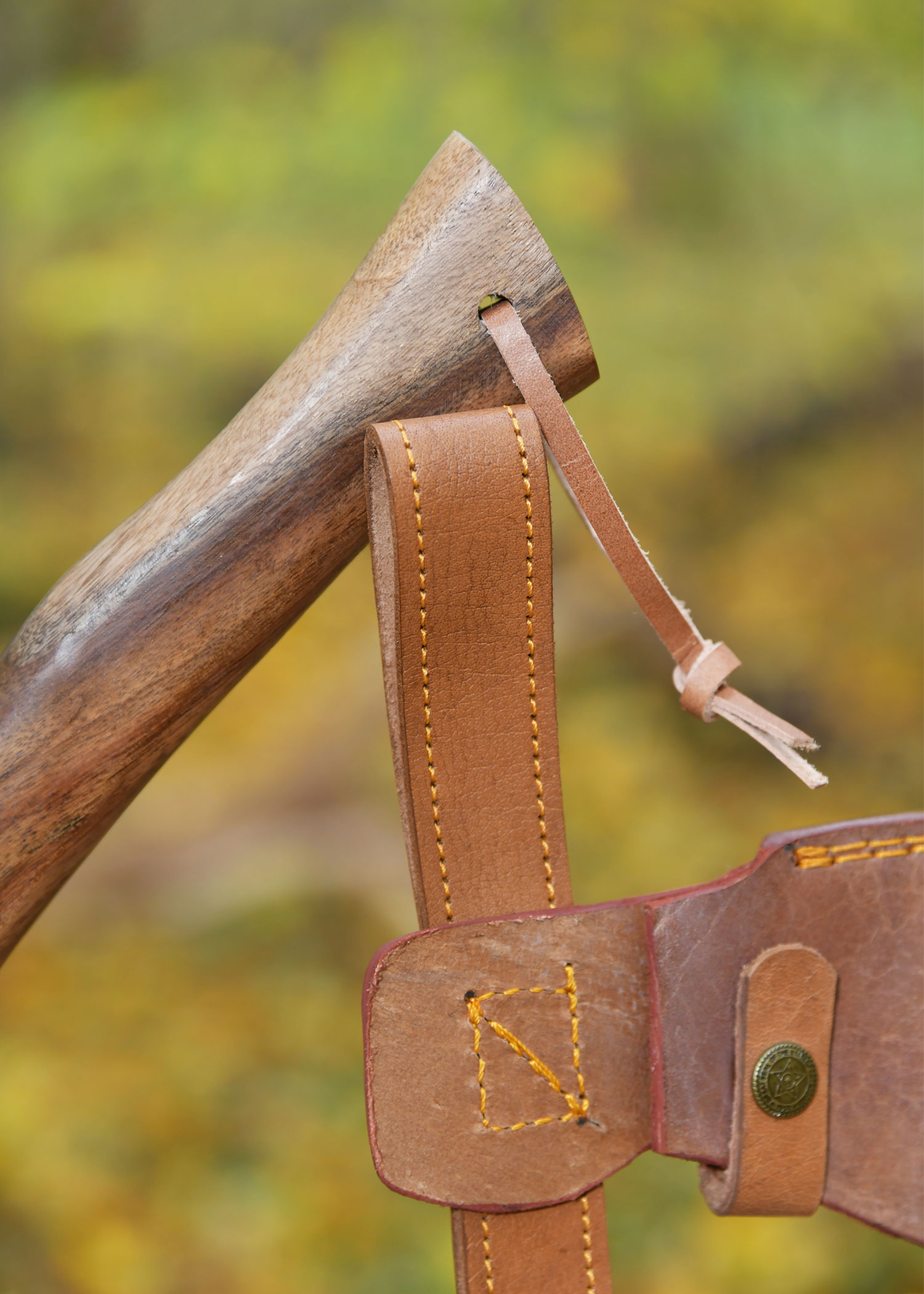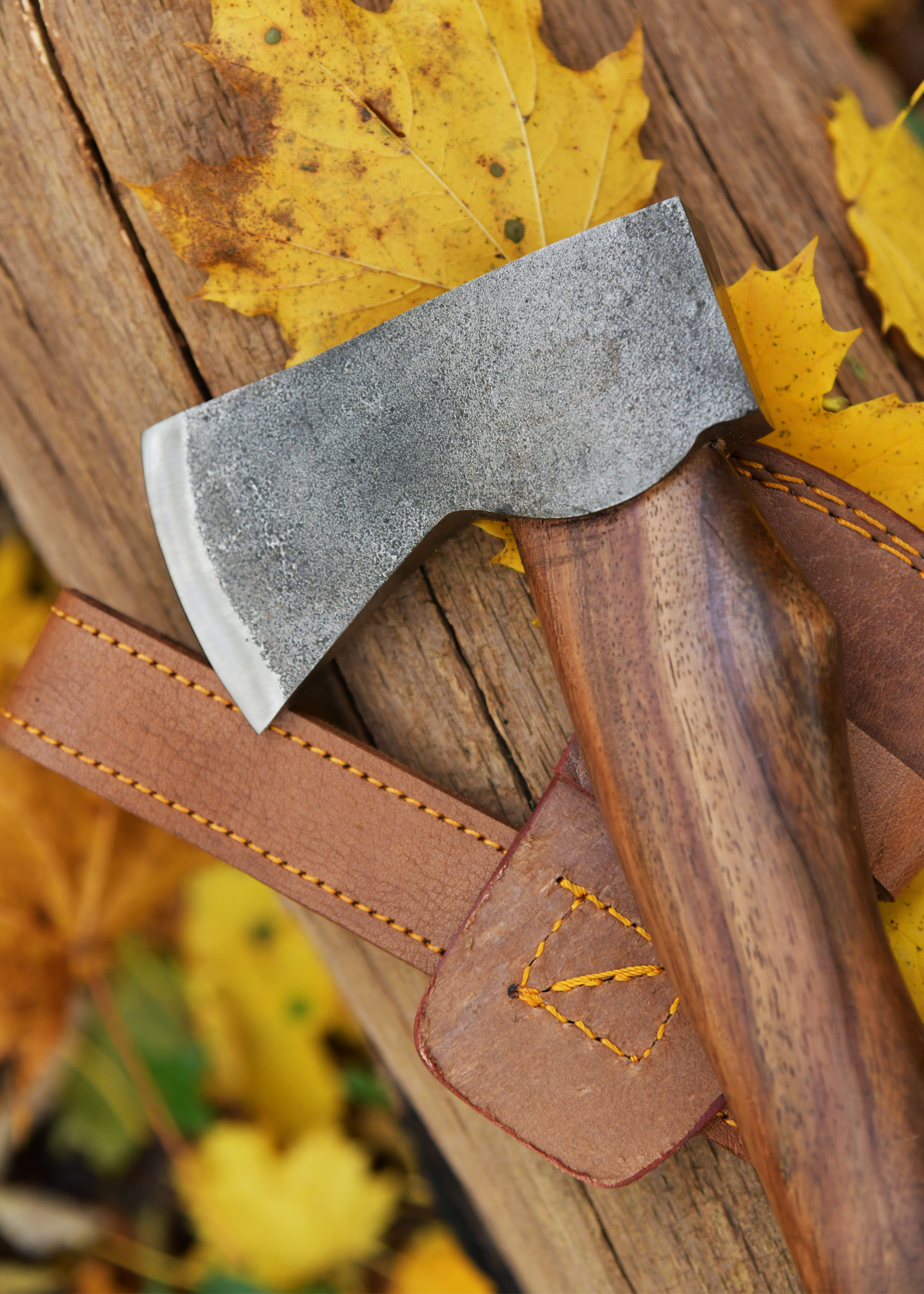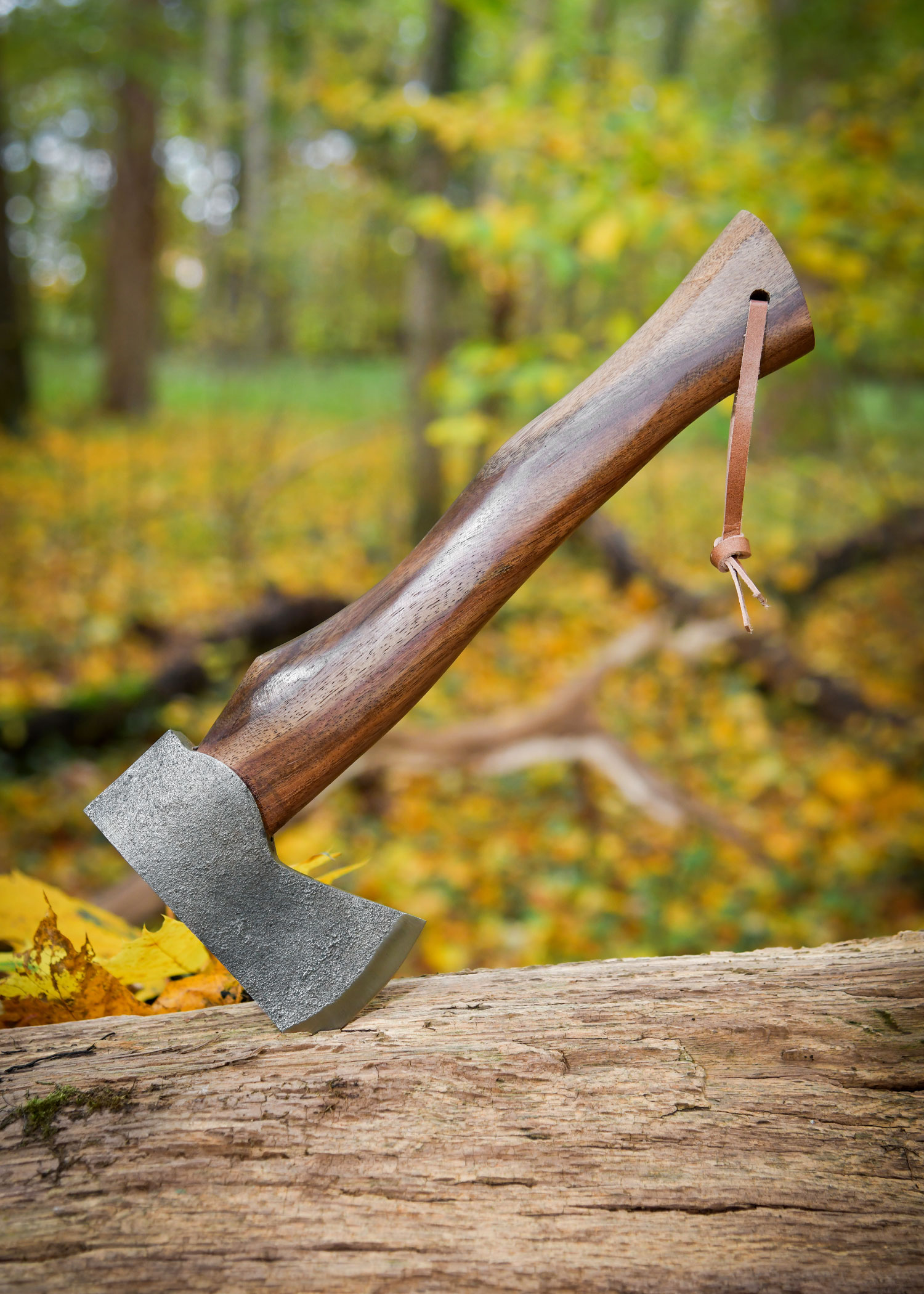 - Material: Stahl (Axtkopf), Holz (Griff), Lederband