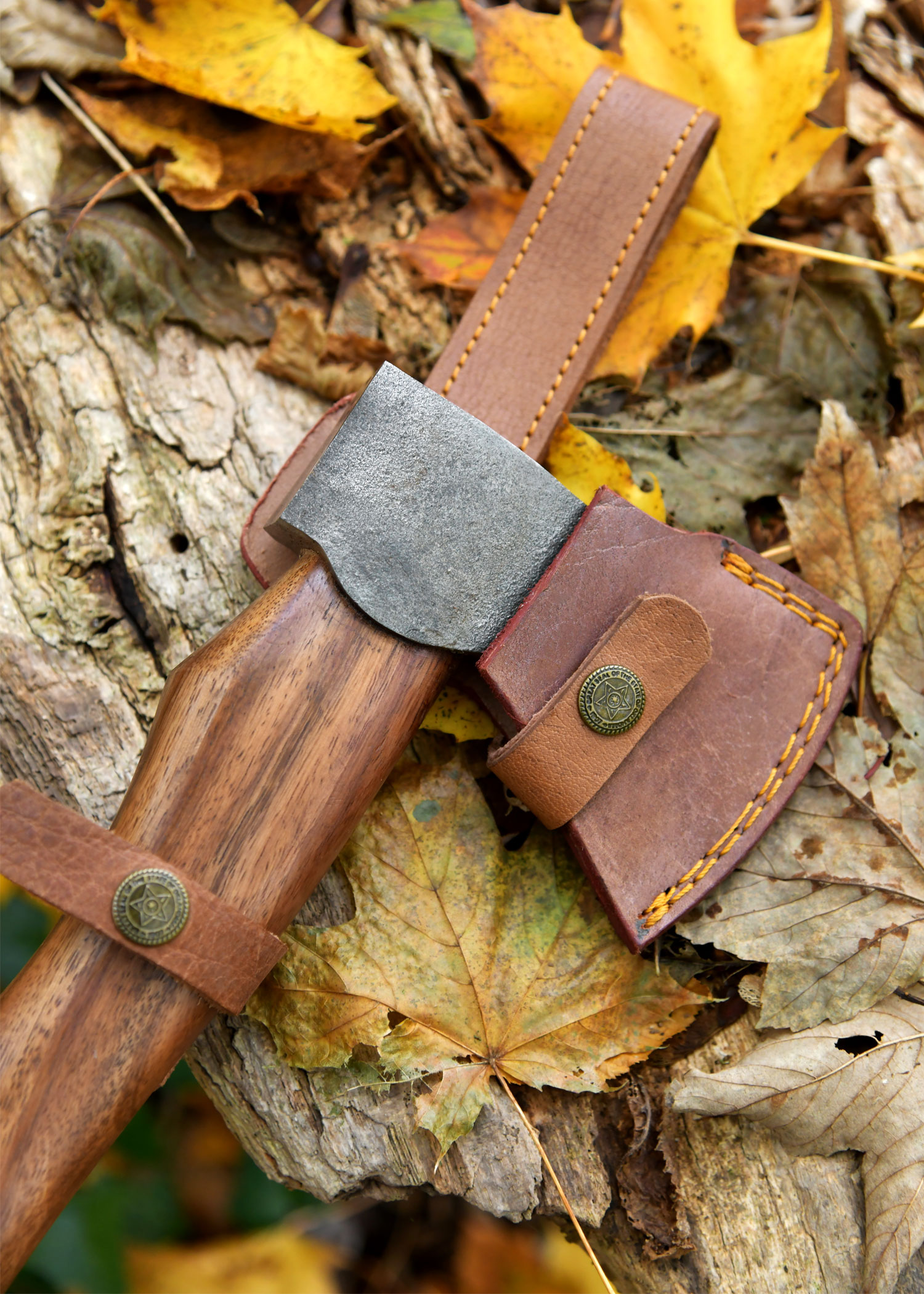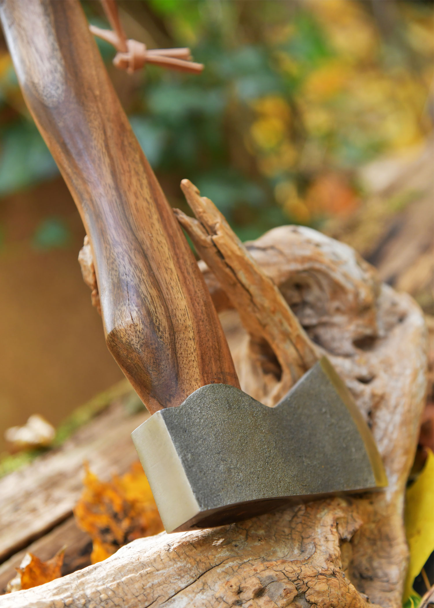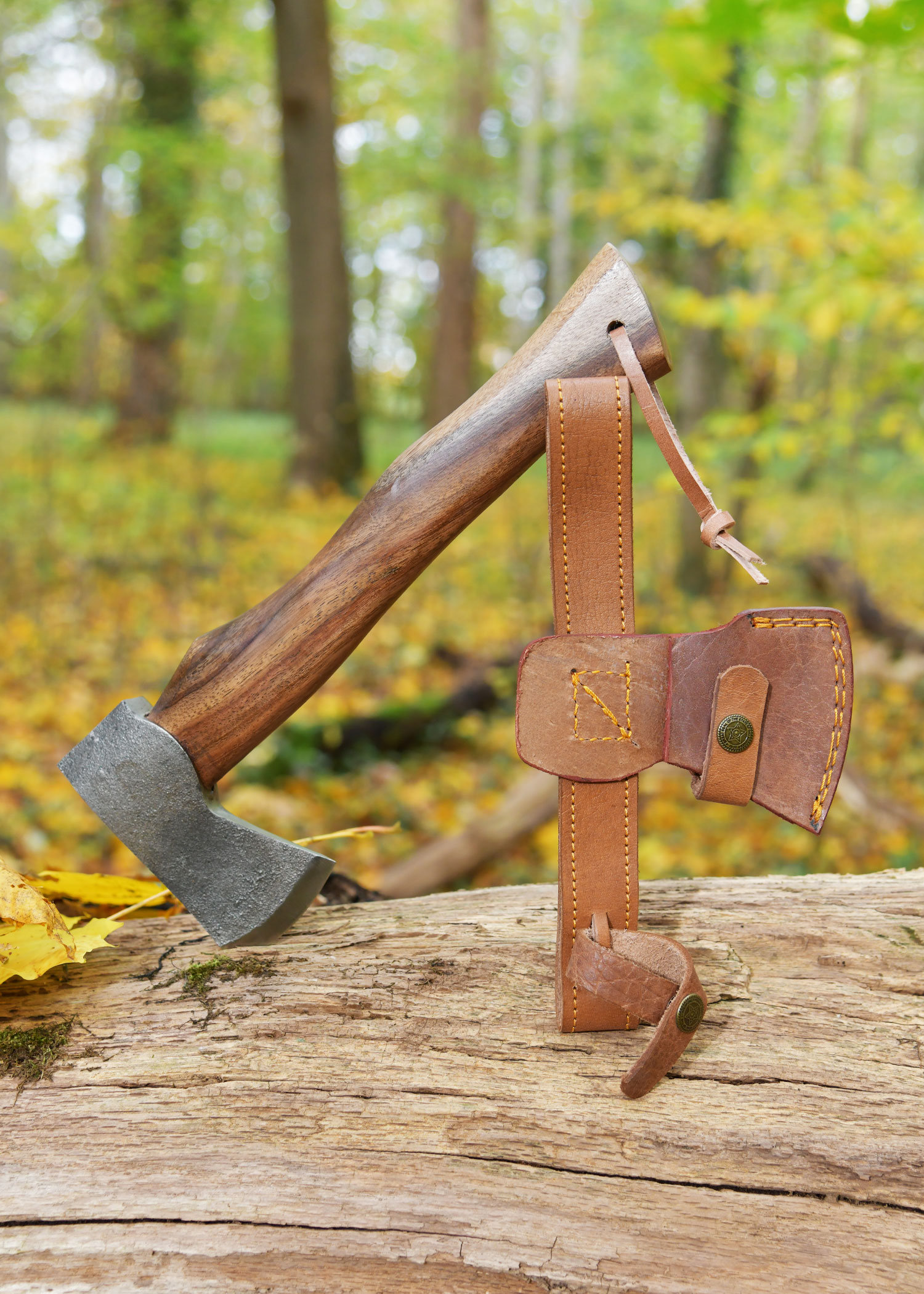 - Material: Stahl (Axtkopf), Holz (Griff), Lederband