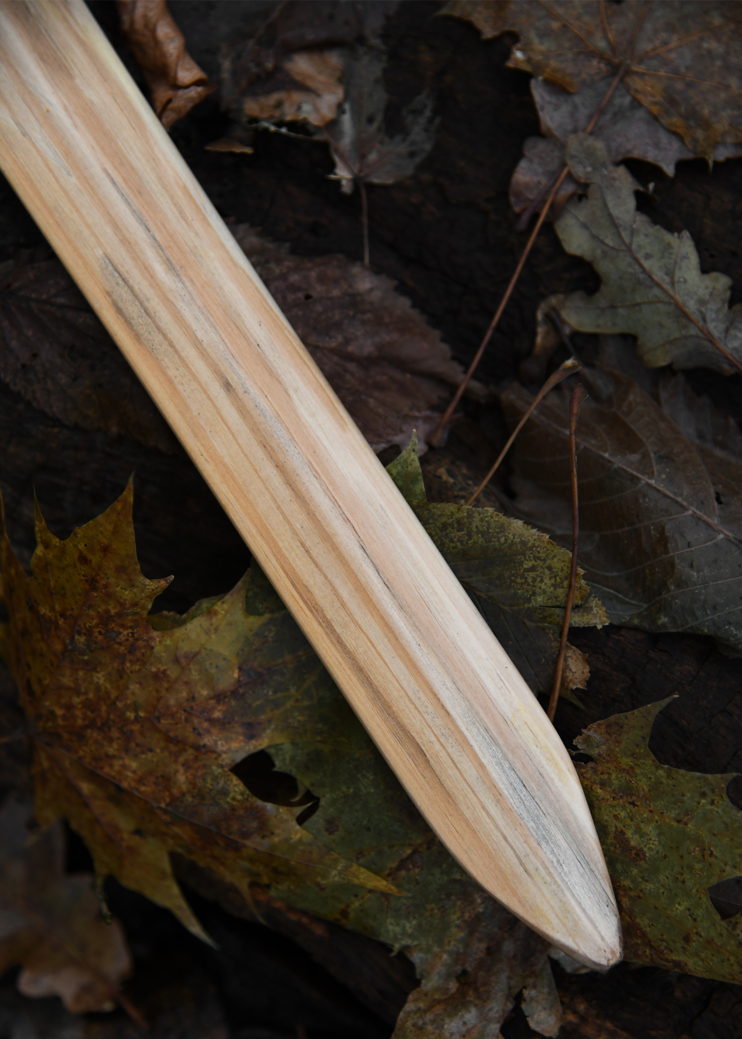 Ein handlicher Anderthalbhänder aus Holz. Sehr praktisch zum Erlernen der korrekten Schwerthiebe.