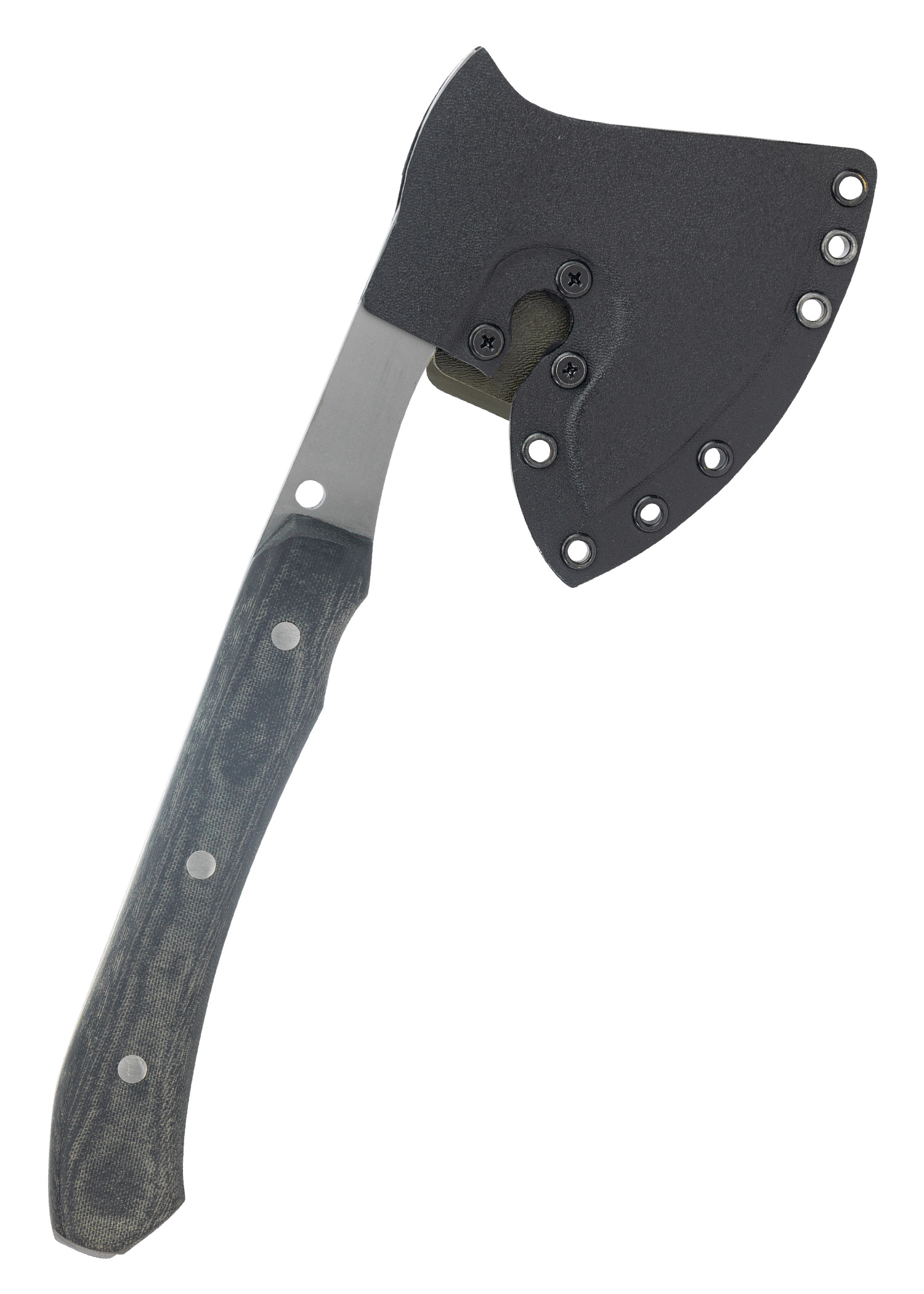 Die K-Night Axt ist eine leichte Kompakt-Axt mit einem verlängerten Micartagriff. Dieses Beil, wie auch seine Träger, sind bereit, es mit jedem Gegner aufzunehmen. Hacken, schneiden, hämmern, stoßen oder schaben zählen zu seinen selbsternannten Kernkompetenzen. Mit Kydexscheide.
