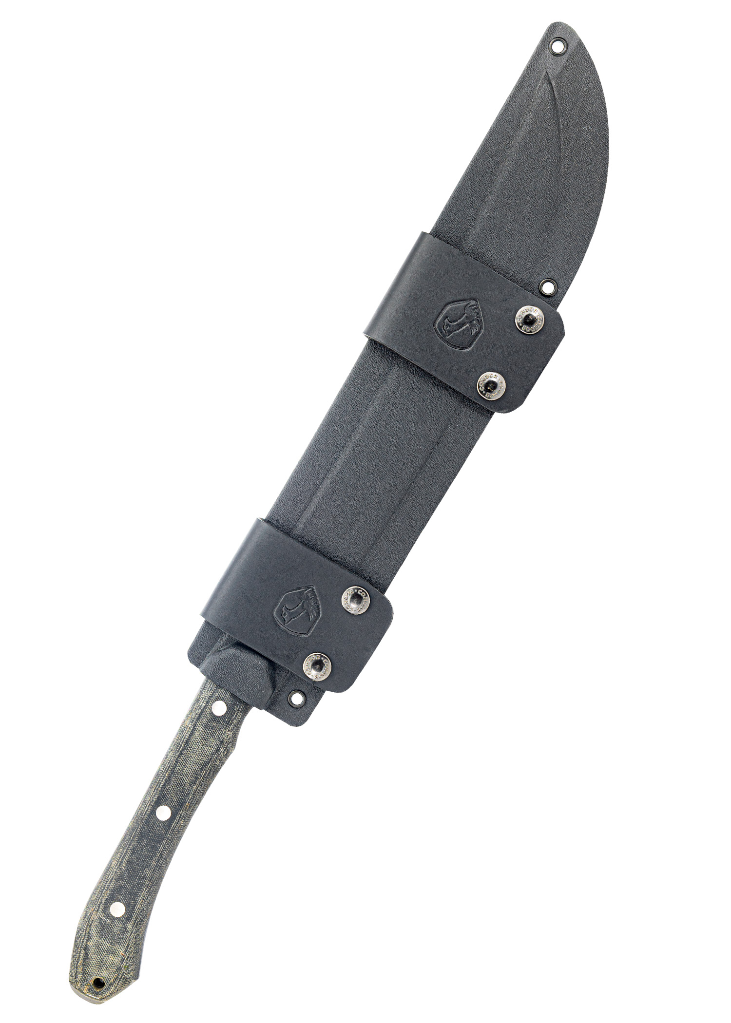 Diese Falchion-ähnliche K-Night Machete mit verlängertem Griff lässt die Grenzen zwischen Schwert und Messer verschwimmen und wurde entwickelt, um eine Nische in deiner Ausrüstung zu füllen. Der Griff ermöglicht fast unendliche Hand-Platzierungsmöglichkeiten. Aufgrund ihrer Größe ist die K-Night Machete bequem zu führen, wodurch sie zu einem hervorragenden Outdoorwerkzeug wird. Wenn Präzision und Kontrolle für Stiche oder Nahkampfangriffe erforderlich sind, ermöglicht das Design einen Knebelgriff oder eine beidhändige Handhabung. Dieses leicht zu tragende und schnell zugängliche Werkzeug ist ein zuverlässiger und praktischer Begleiter für den täglichen Bedarf.