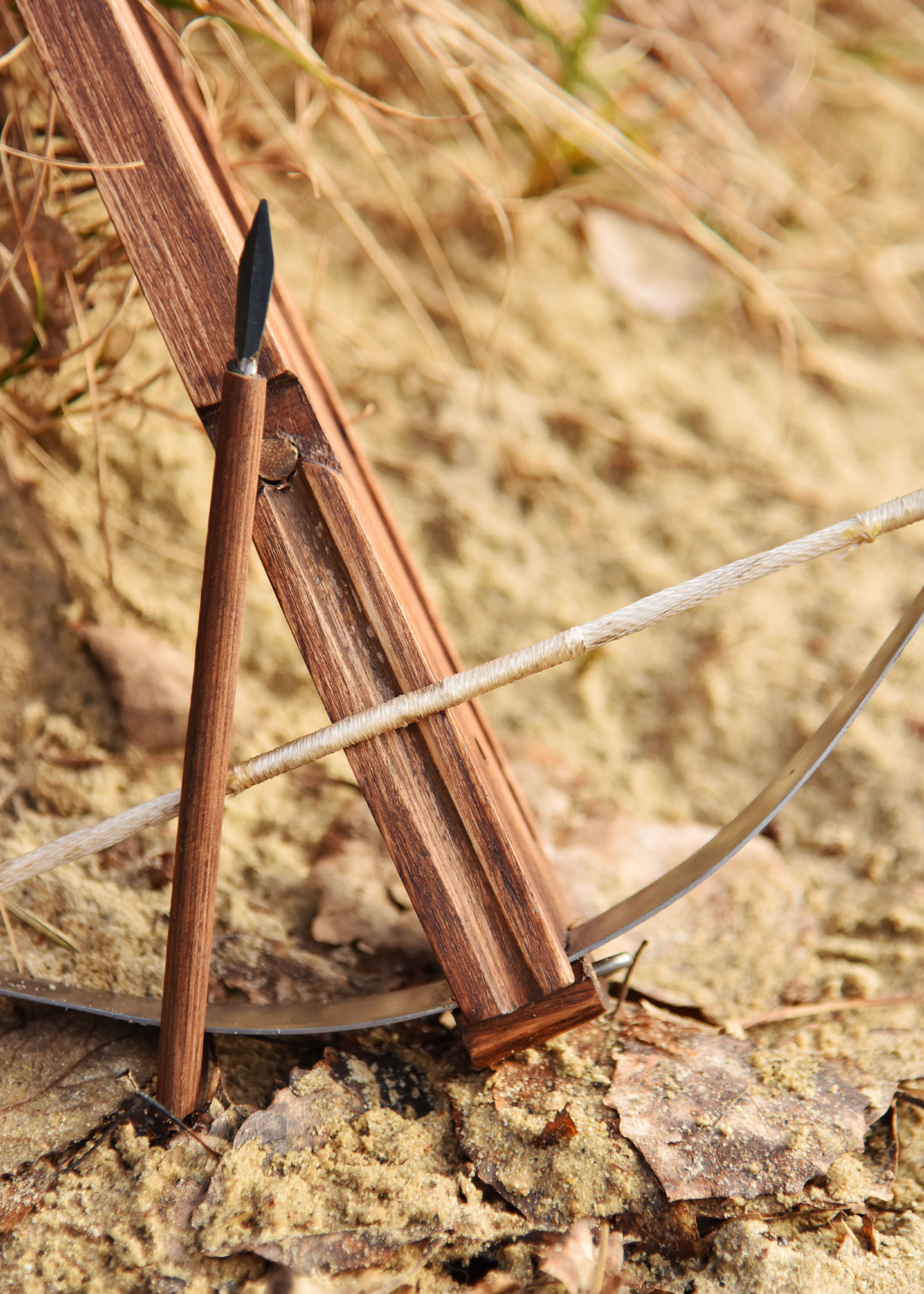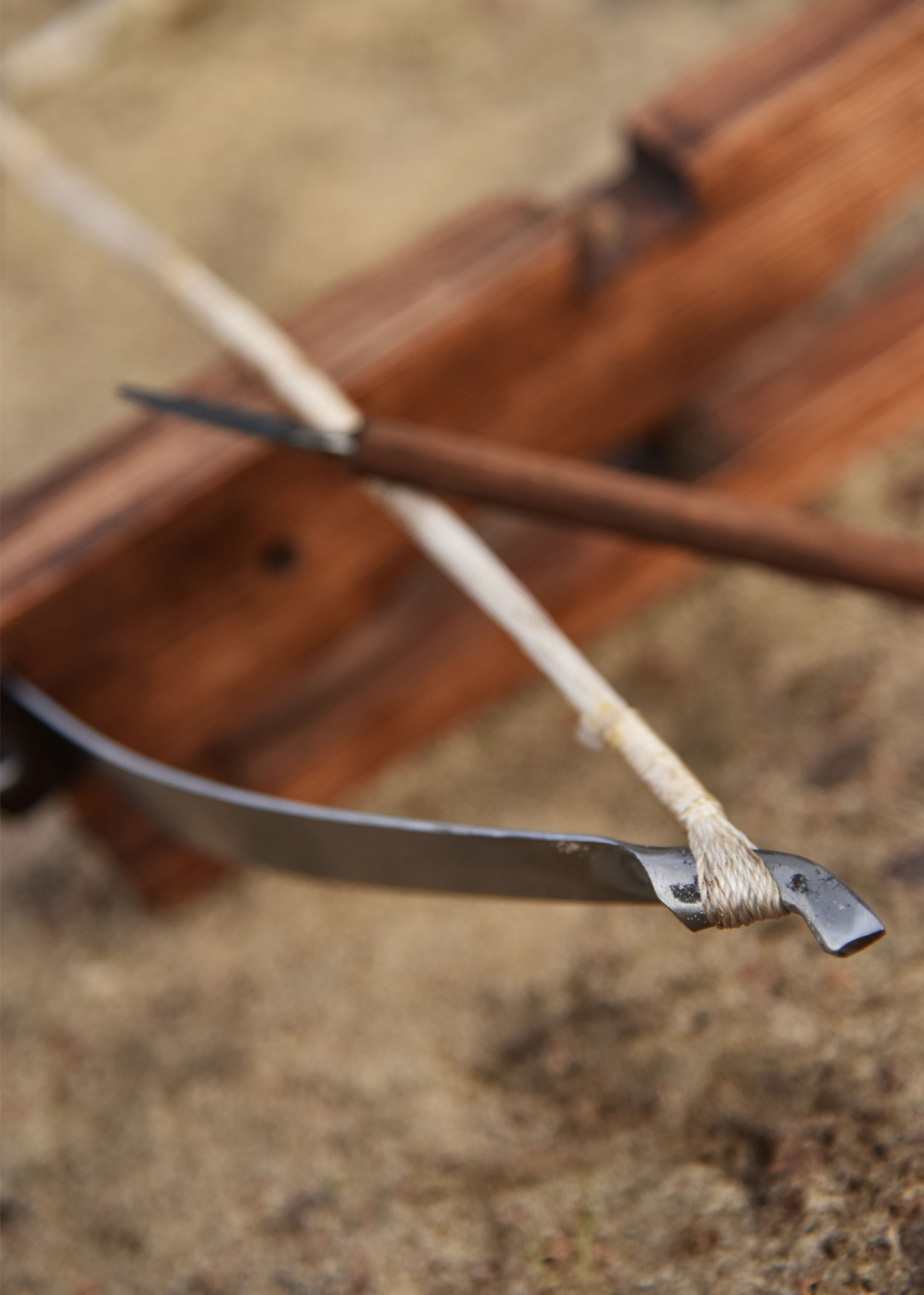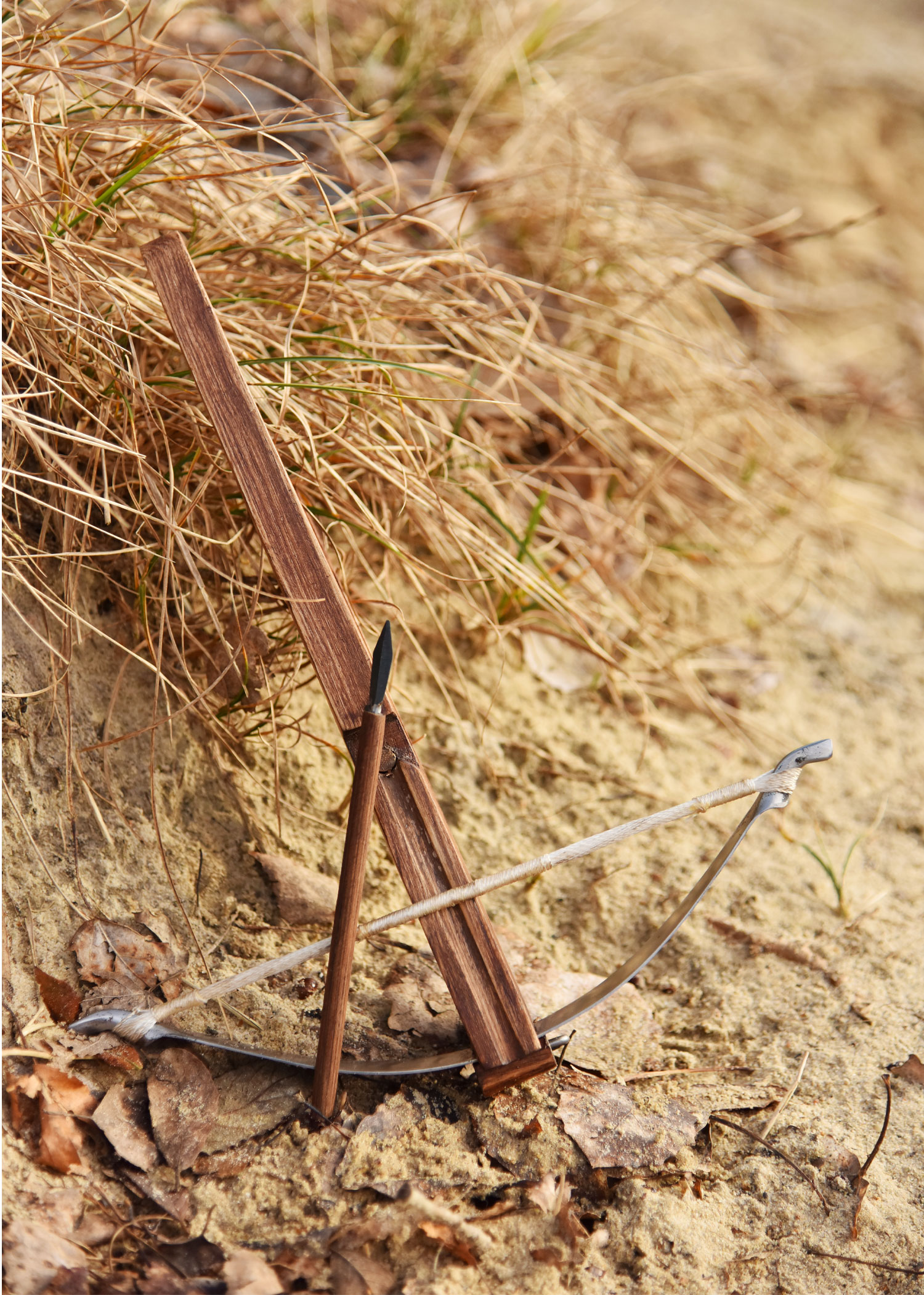 Voll funktionsfähig. Die Armbrust kann problemlos mit der Hand gespannt werden.
