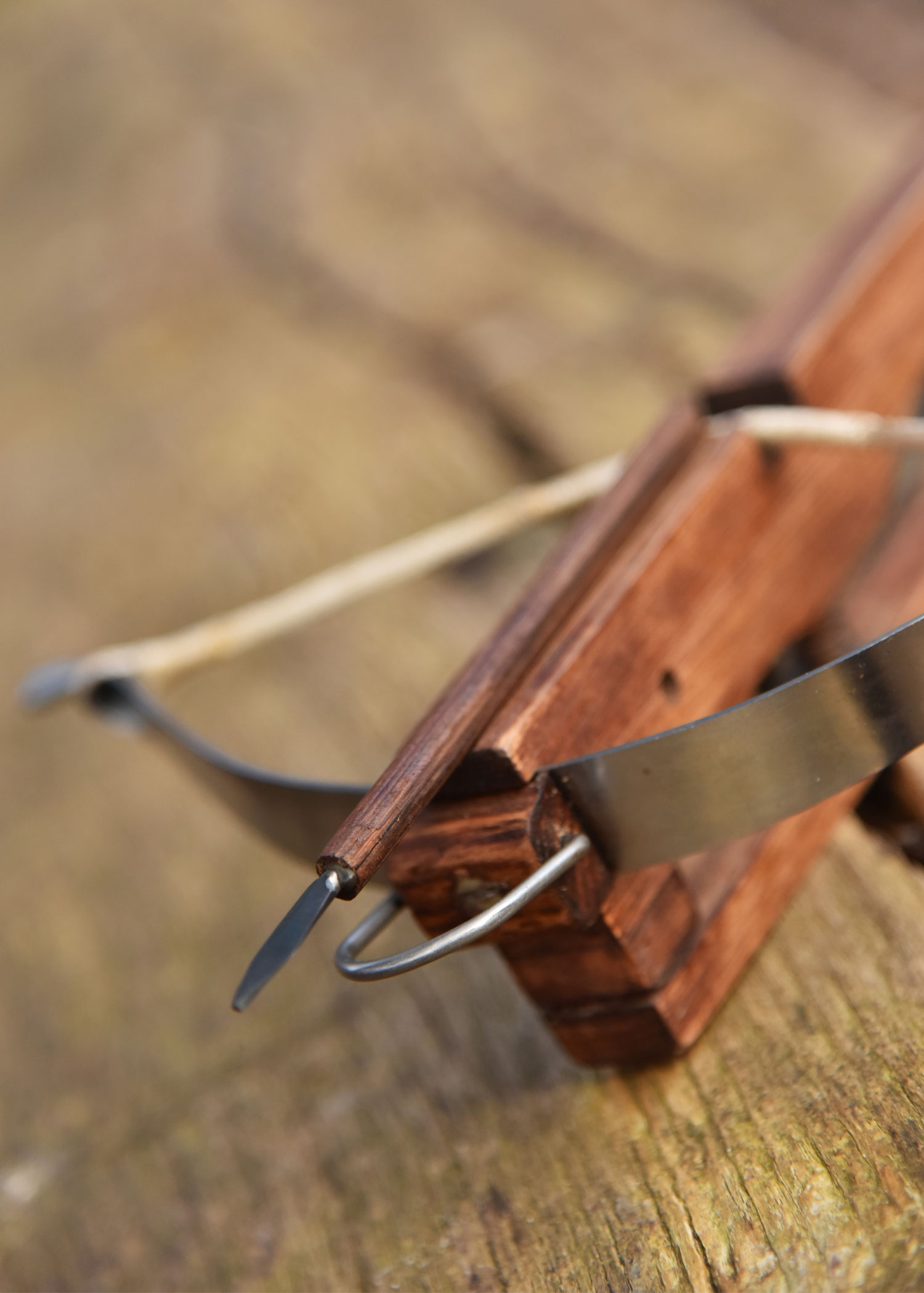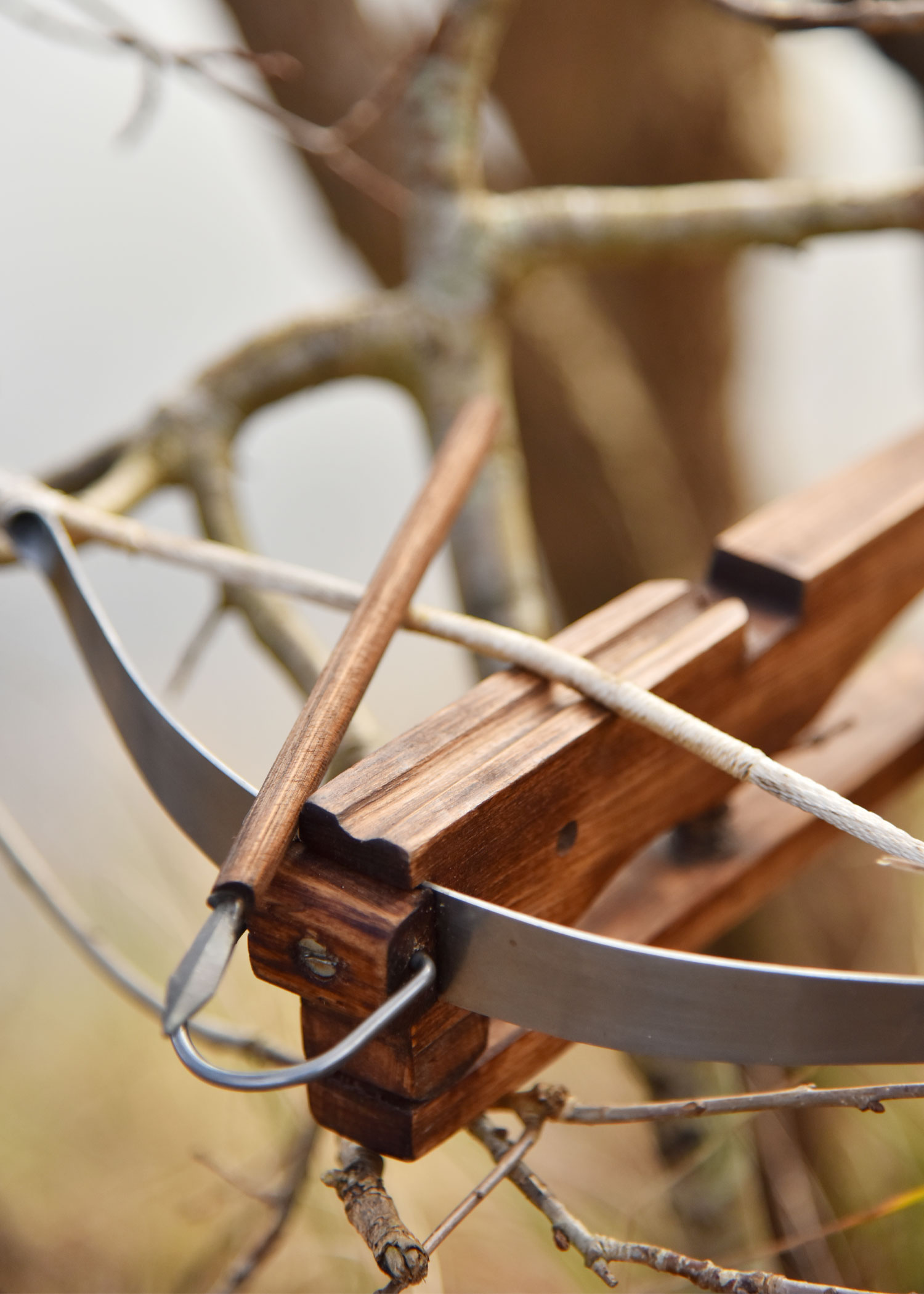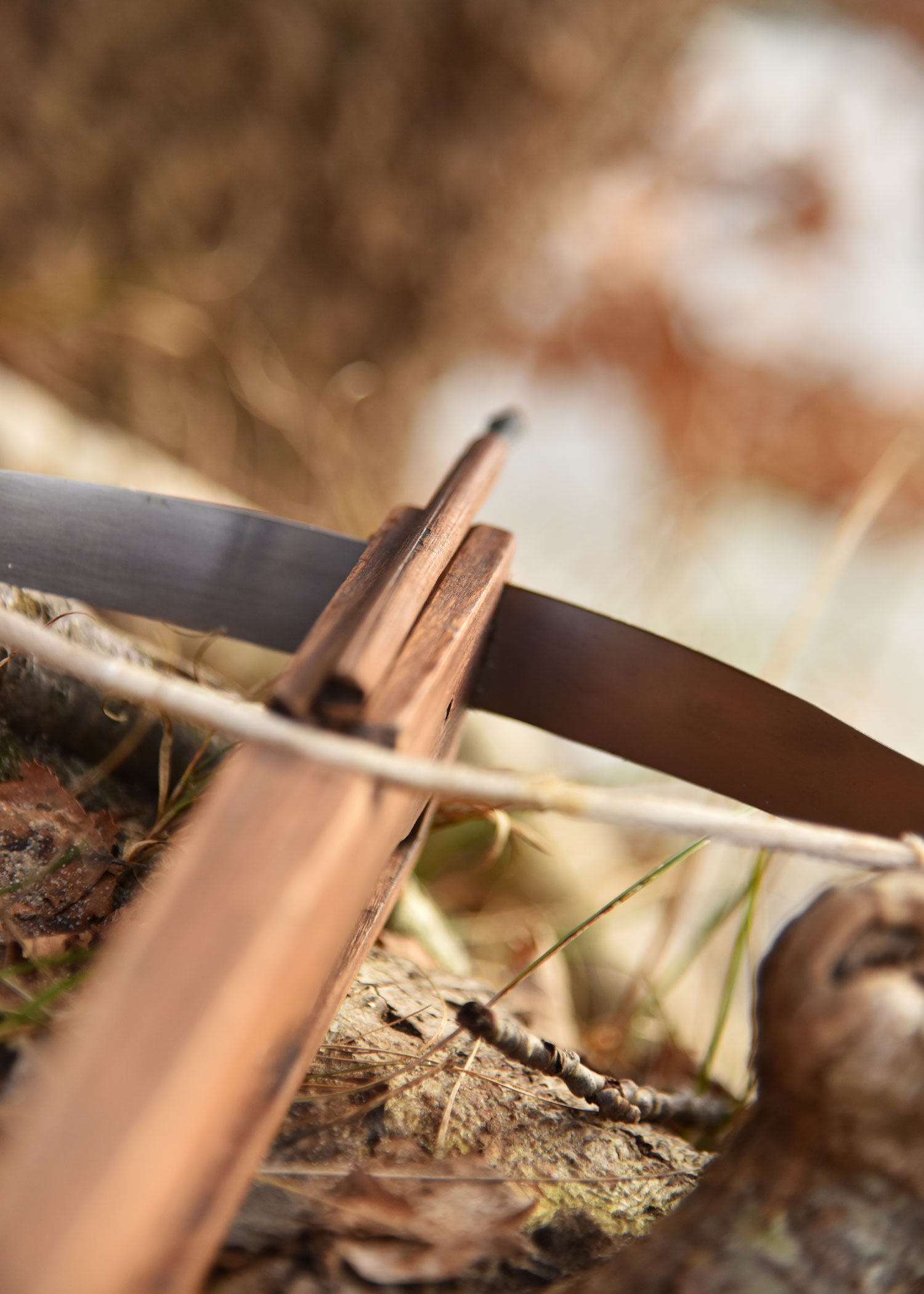Voll funktionsfähig. Die Armbrust kann problemlos mit der Hand gespannt werden.