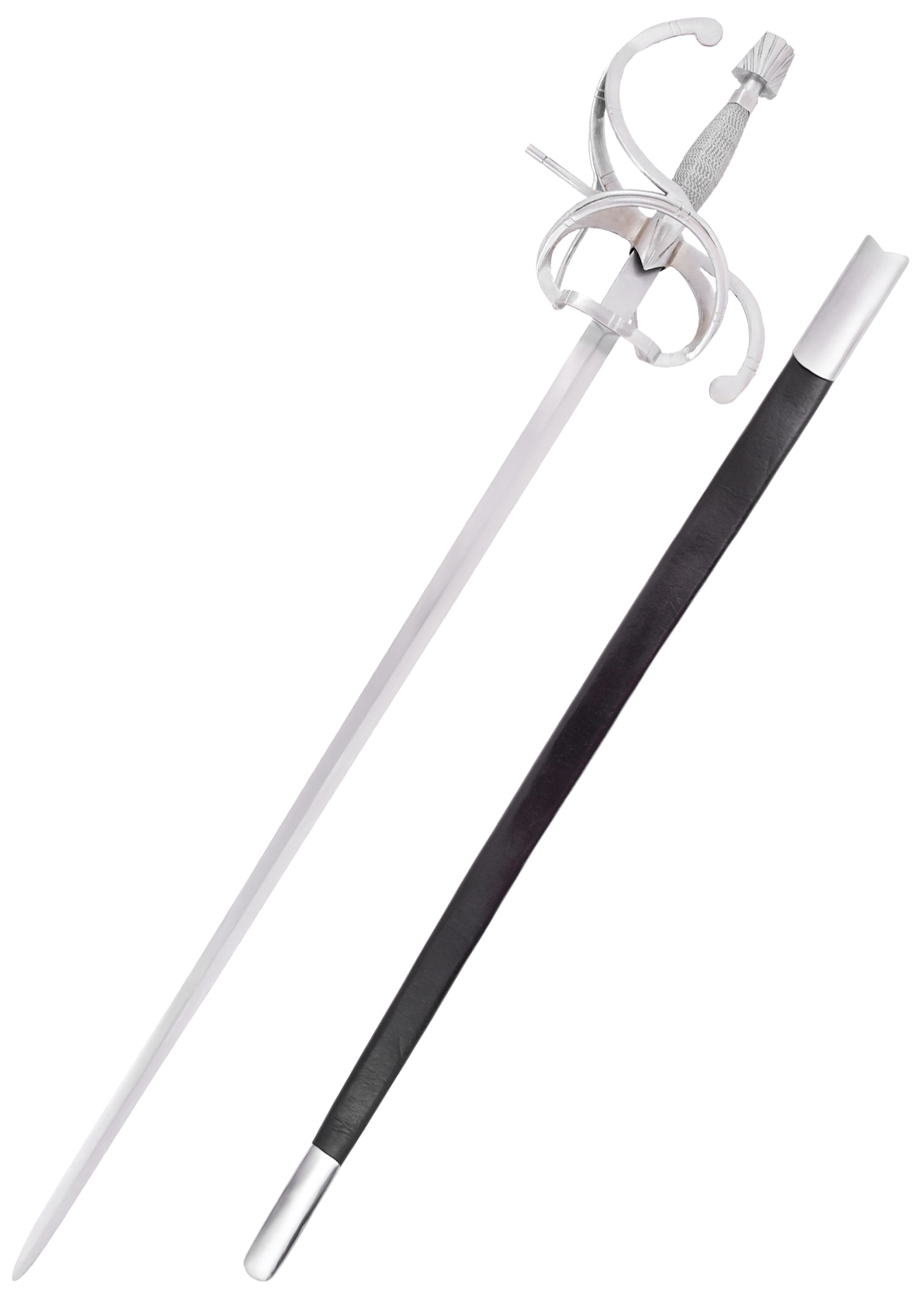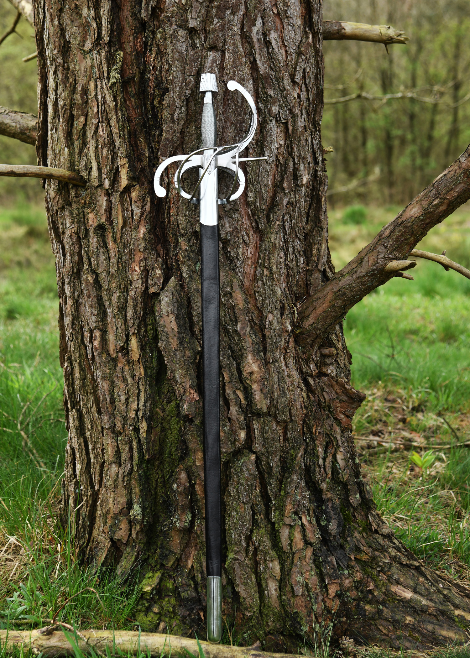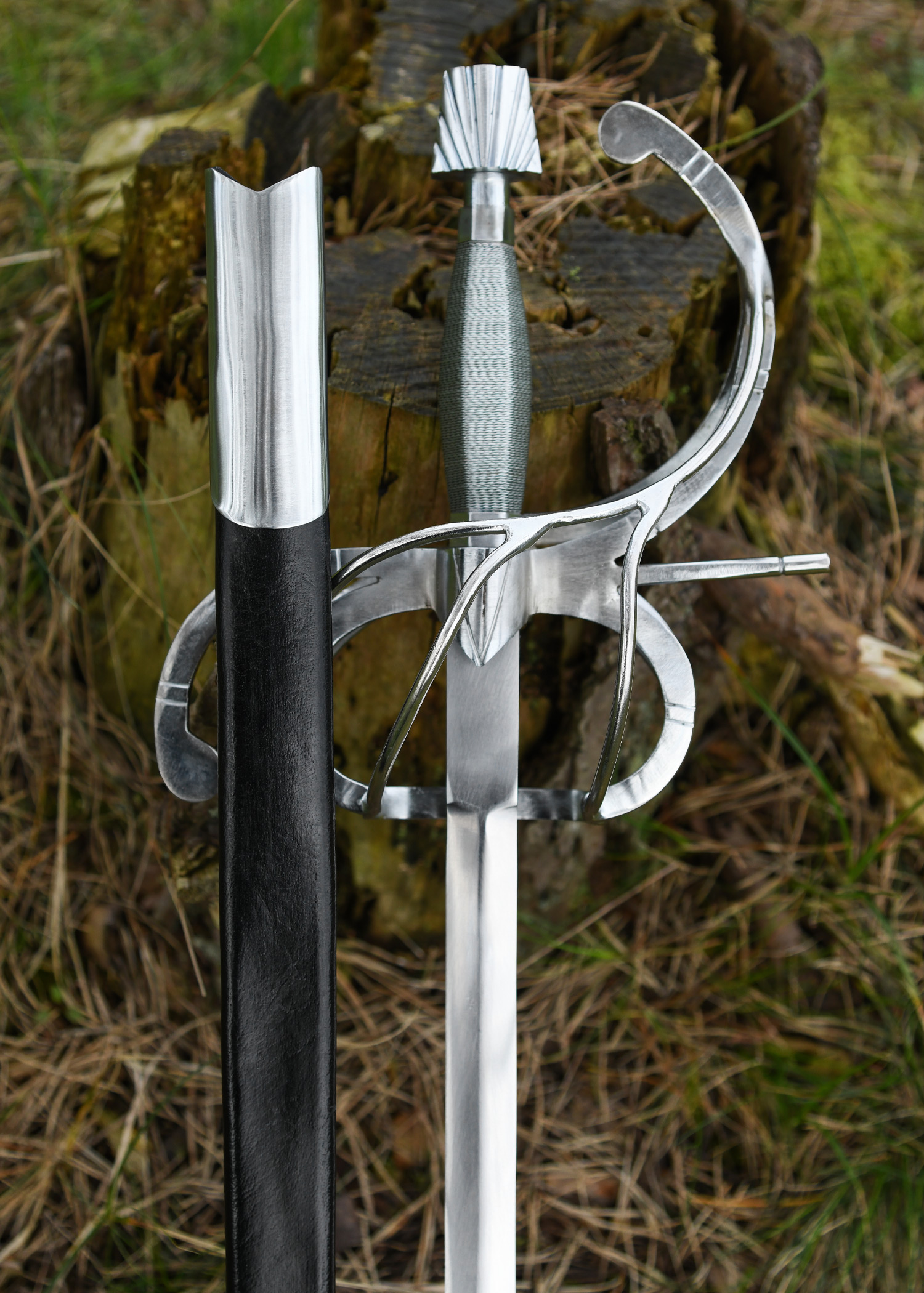 Renaissance Rapier mit geschwungenem Parier mit Lederscheide