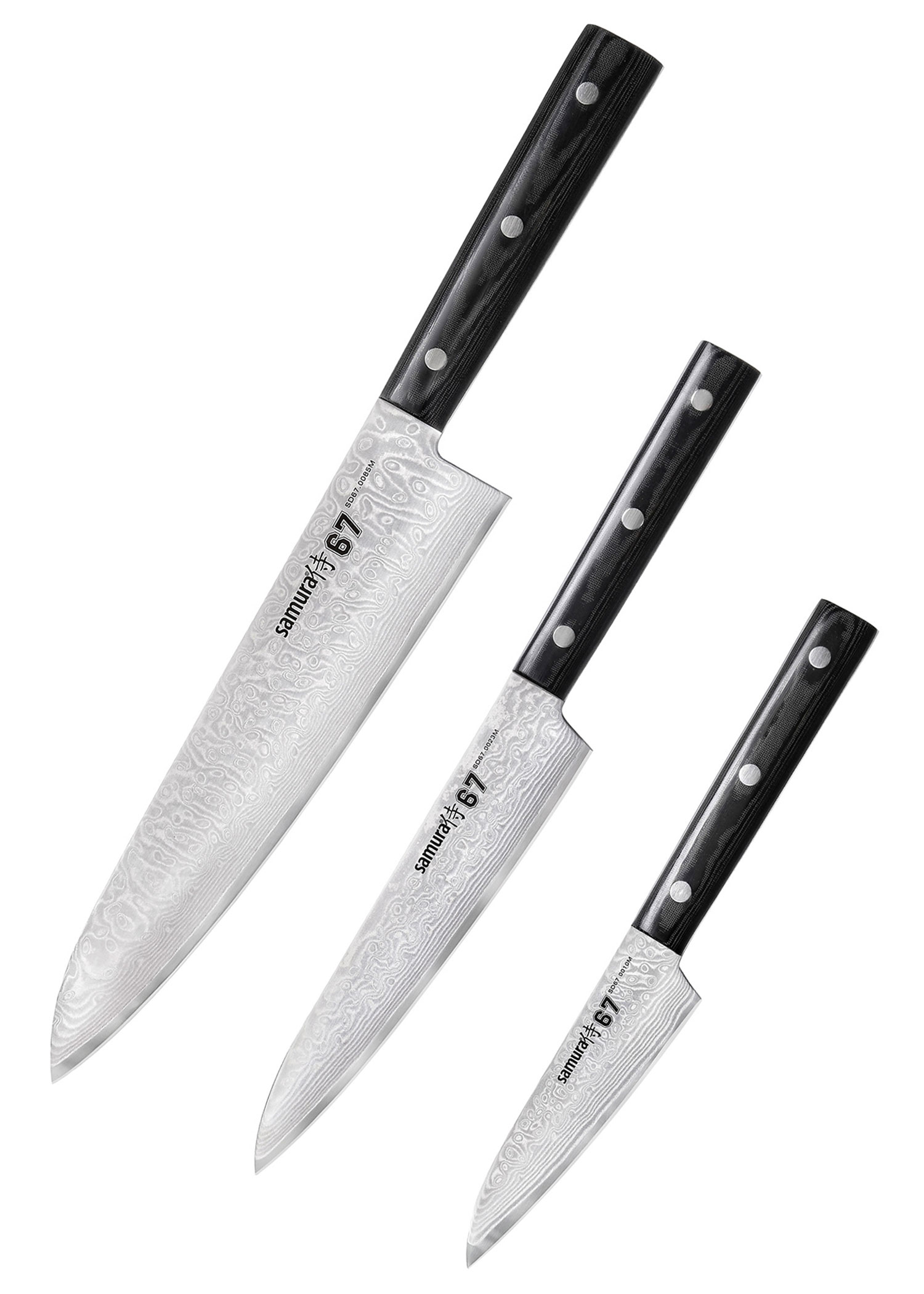 Samura DAMASCUS 67 Set aus 3 Küchenmessern: Gemüsemesser, Allzweckmesser, Kochmesser, 67 Lagen, Härte 61 HRC