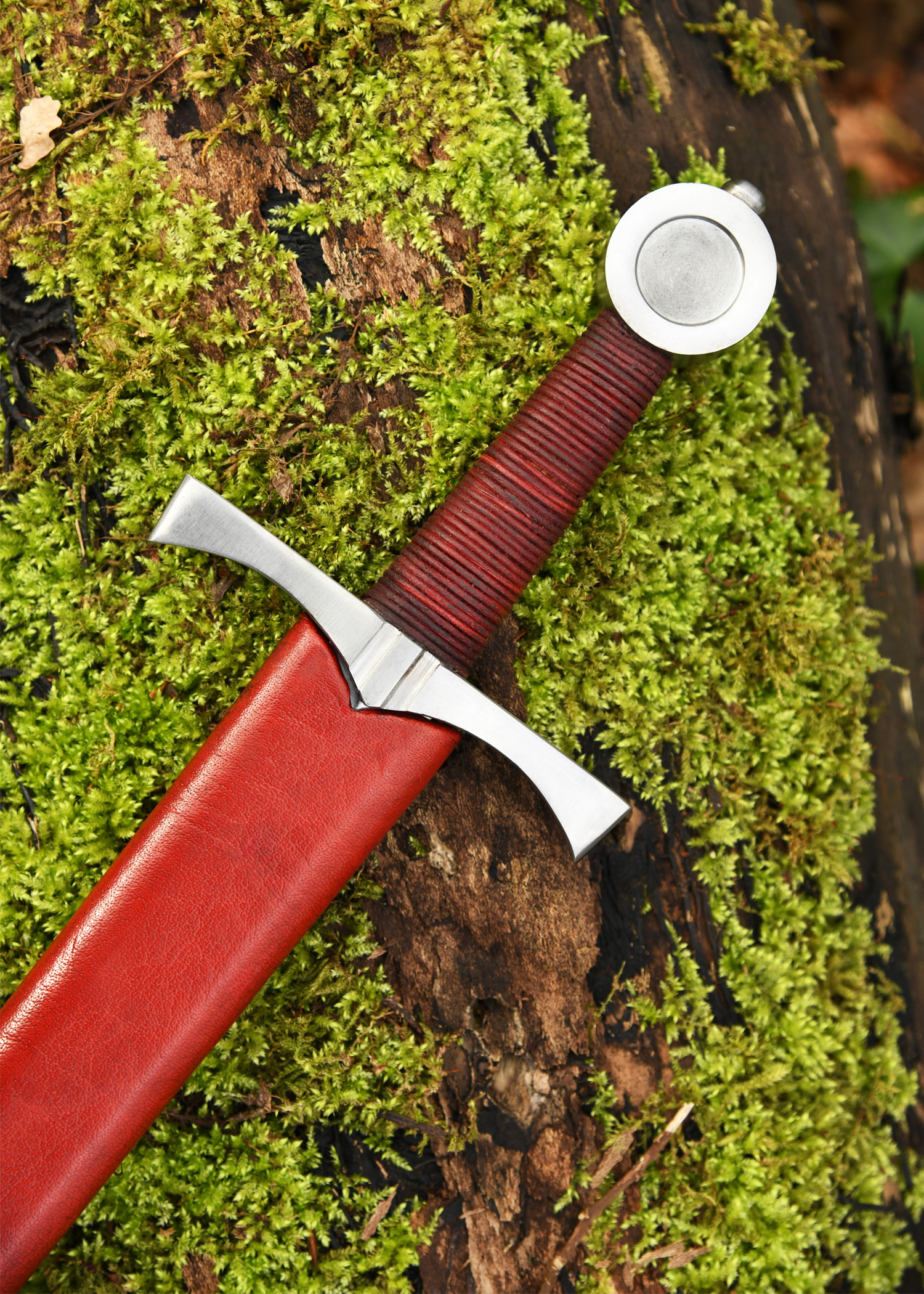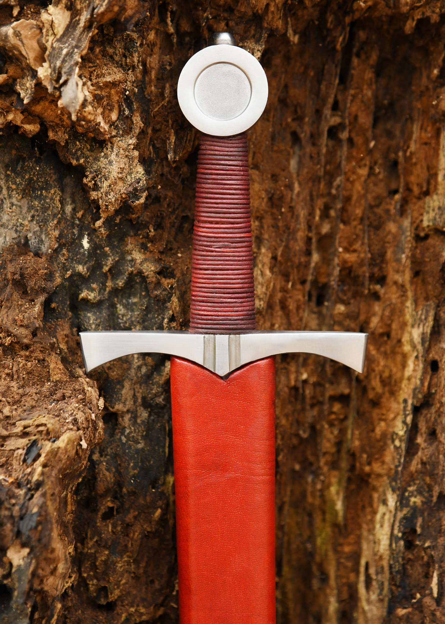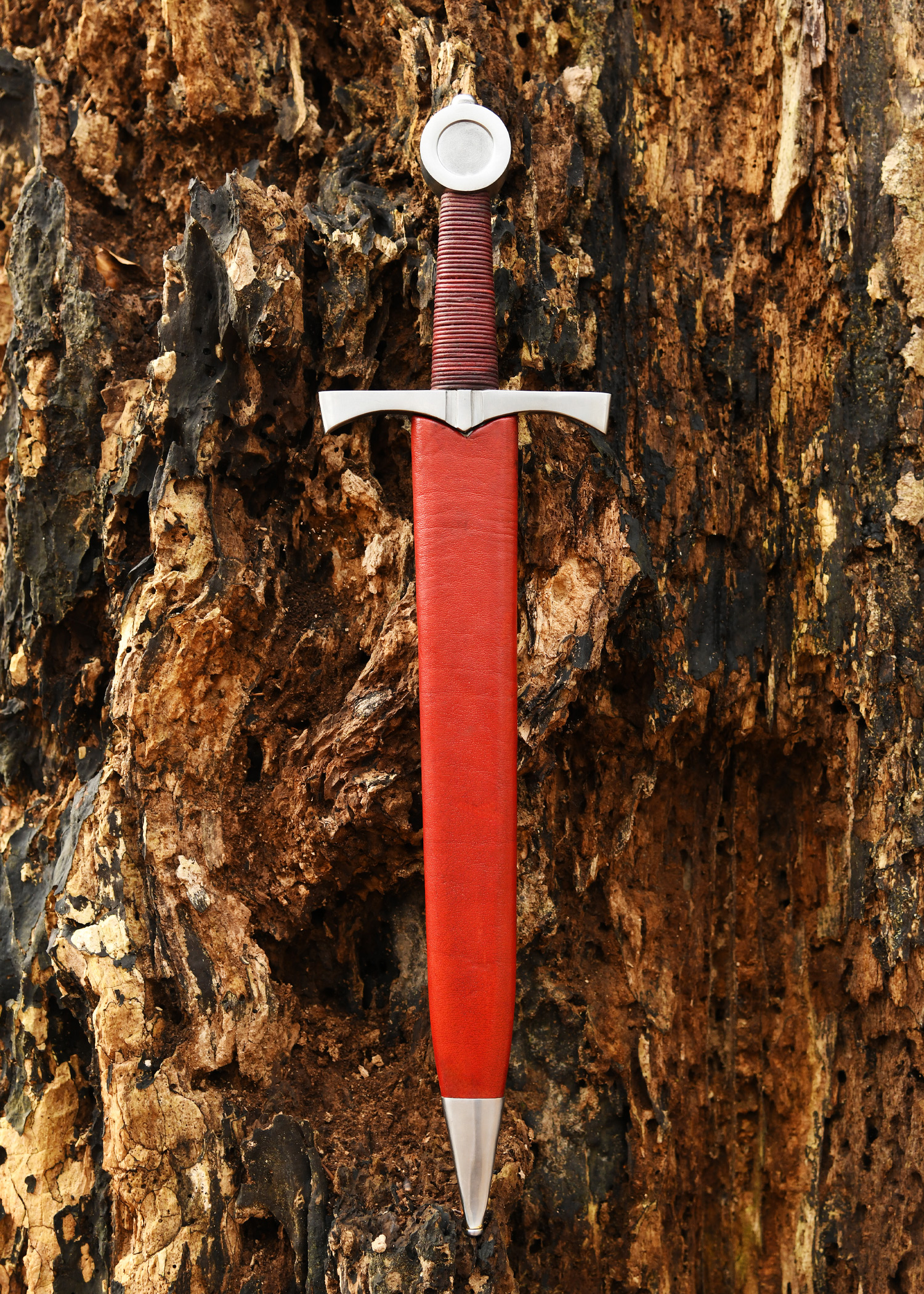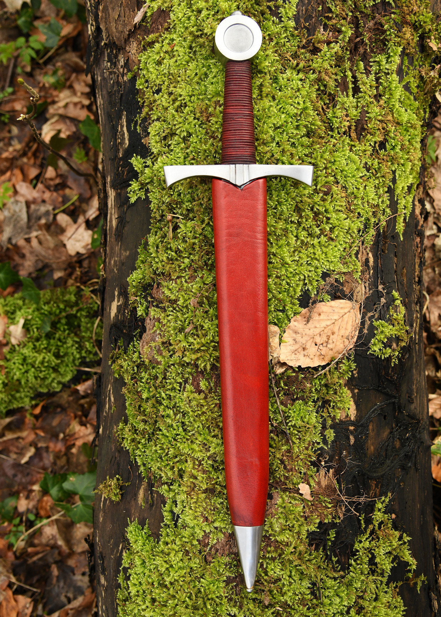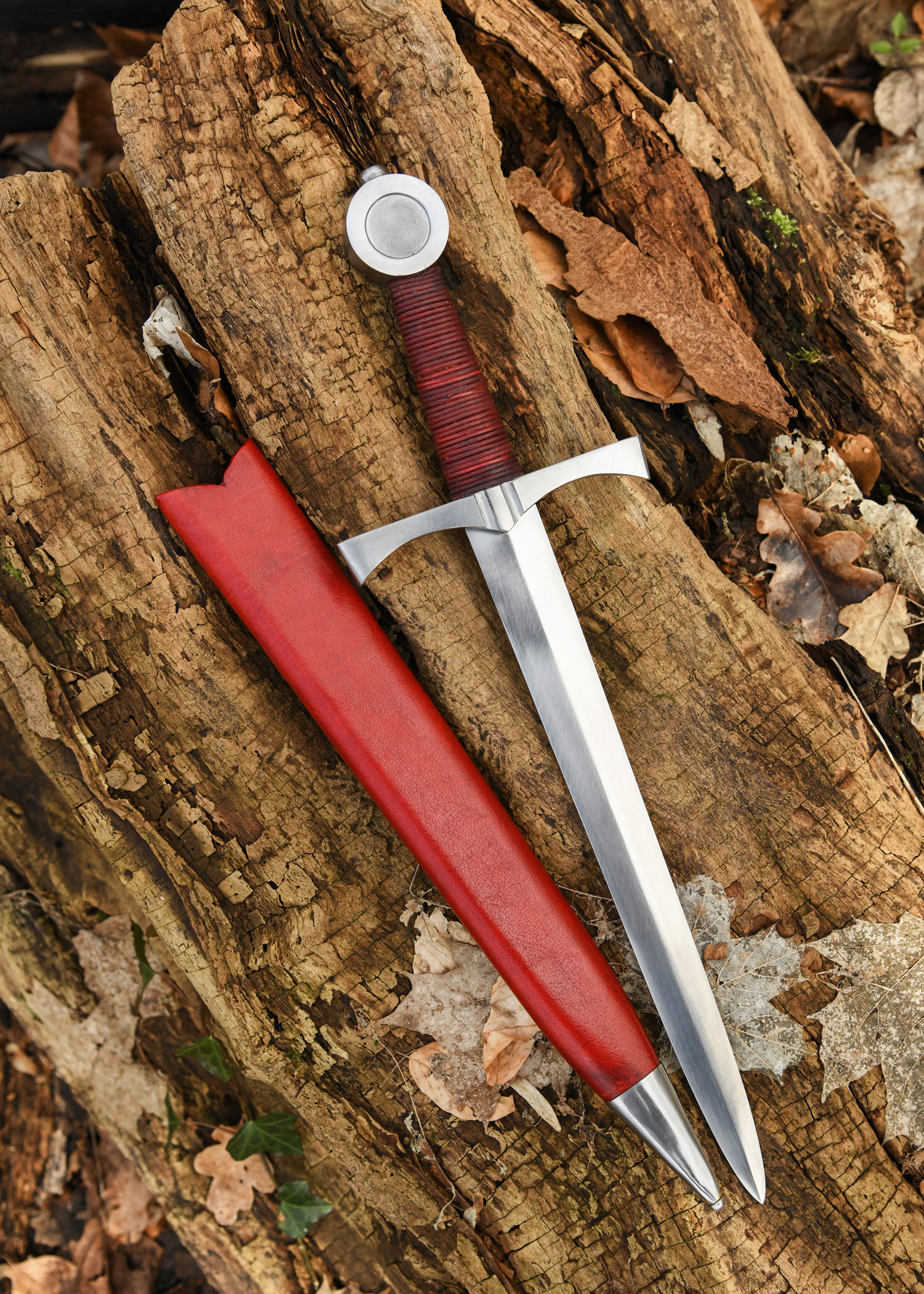 Dekorative Replik eines spätmittelalterlichen Scheibenknaufdolches um ca. 1400, wie sie oft von unberittenen Soldaten und Bogenschützen verwendet wurden.