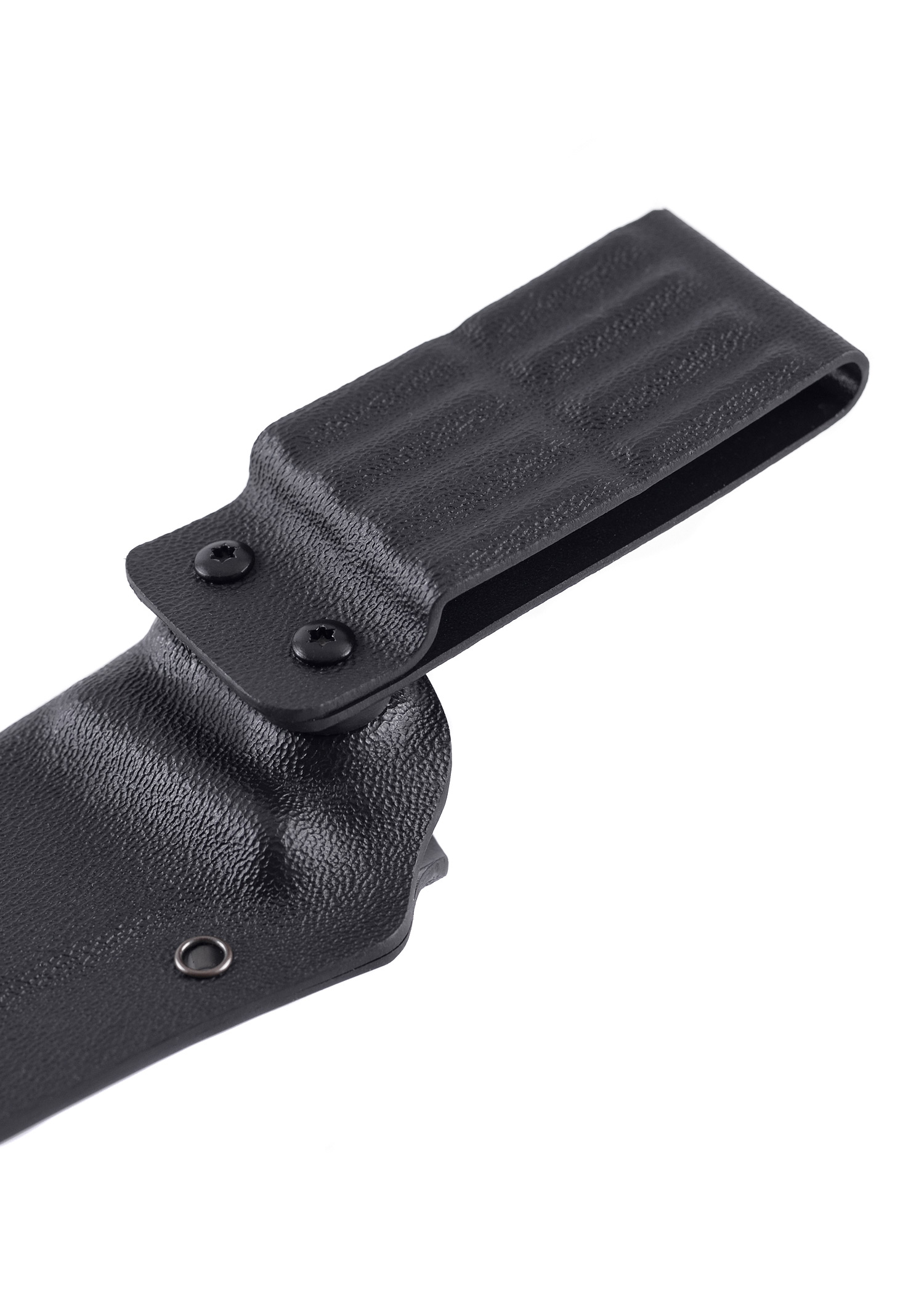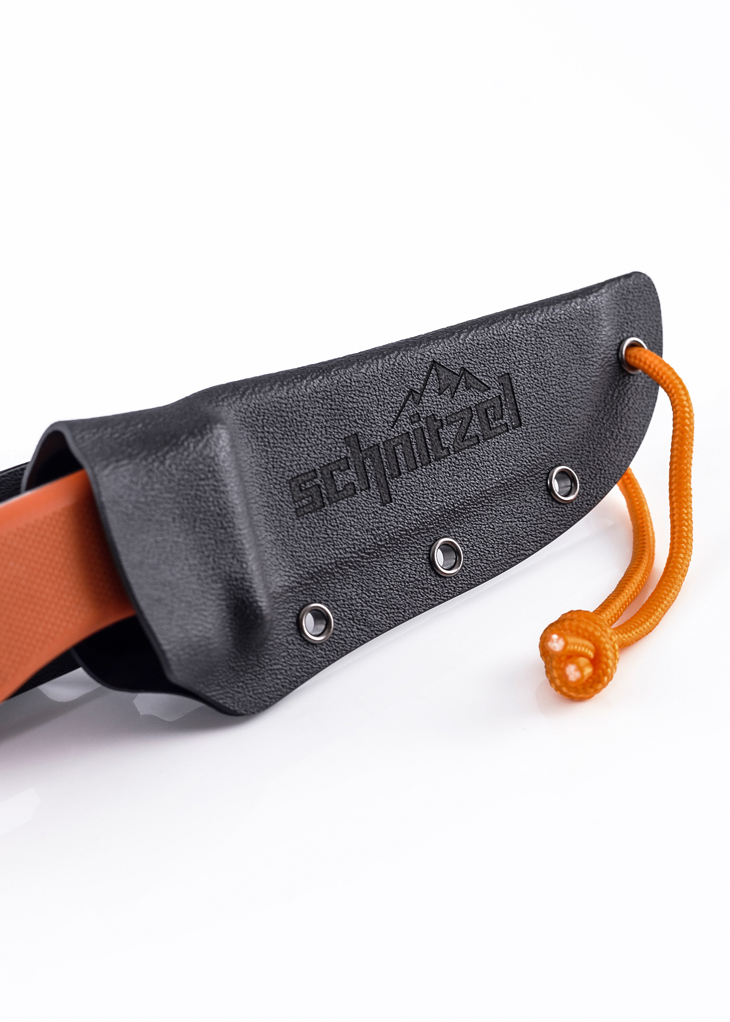 Gekrönt werden die o. g. Features des Messers durch eine ultrarobuste und nahezu alles verzeihende Scheide aus Kydex-Material. Sie schließt sich wie ein Handschuh um das Messer und sorgt für ein sicheres Tragen. Die Gürtelschlaufe ist abnehmbar. Nässe, Schlamm und Kälte können ihr nichts anhaben. Ein Paracord-Lanyard in Grifffarbe rundet das Gesamtbild ab.