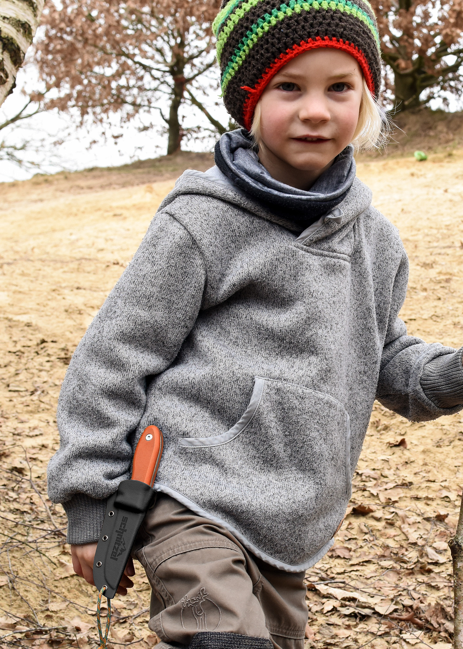 Das SCHNITZEL ist ein Kinderschnitzmesser / Outdoormesser, das es in sich hat und sich vor den Messern der Erwachsenen nicht zu verstecken braucht! Es trägt den Namen UNU.