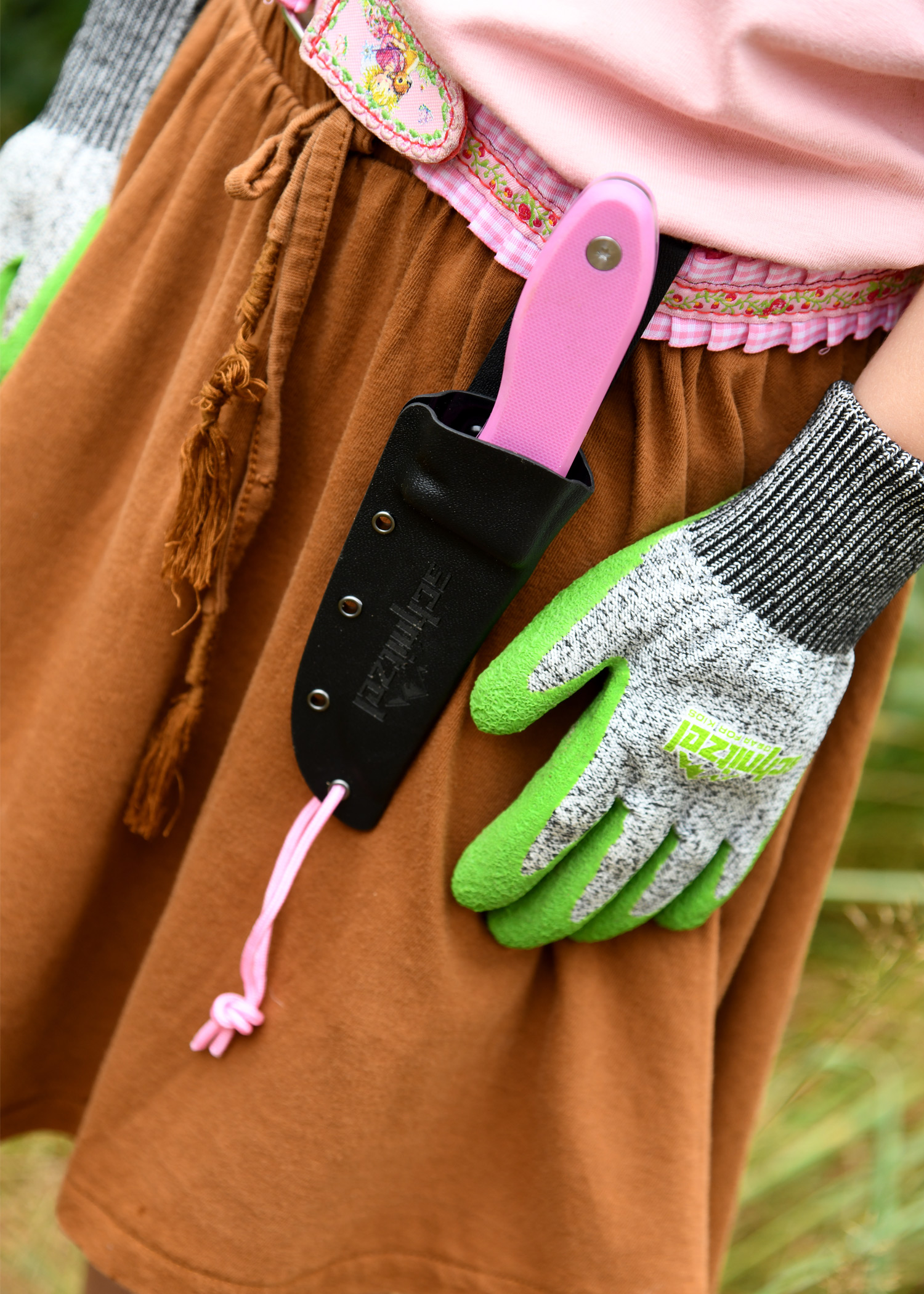 Durch seine rutschfesten und konturierten G-10 Griffschalen ist es äußerst robust und liegt bei Kindern (ca. 4-10 Jahre) unglaublich gut und vor allem sicher in der Hand. Drei unterschiedliche, auffällige und moderne Grifffarben erleichtern das Wiederfinden in der Natur. Erhältlich mit Griffschalen in pink, grün, blau oder orangerot.