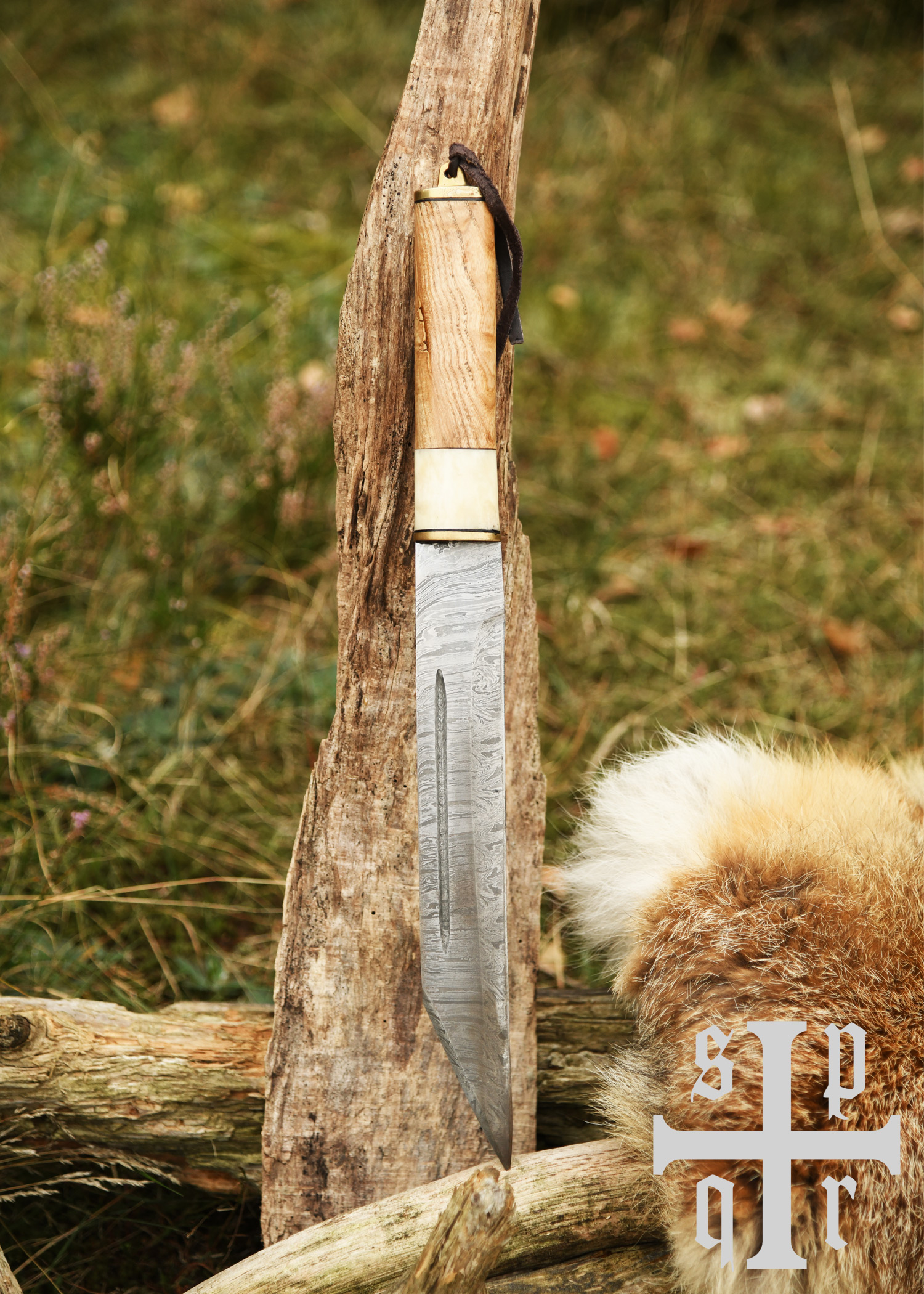 Skramasax / Sax mit Damastklinge und Holz-/Knochengriff