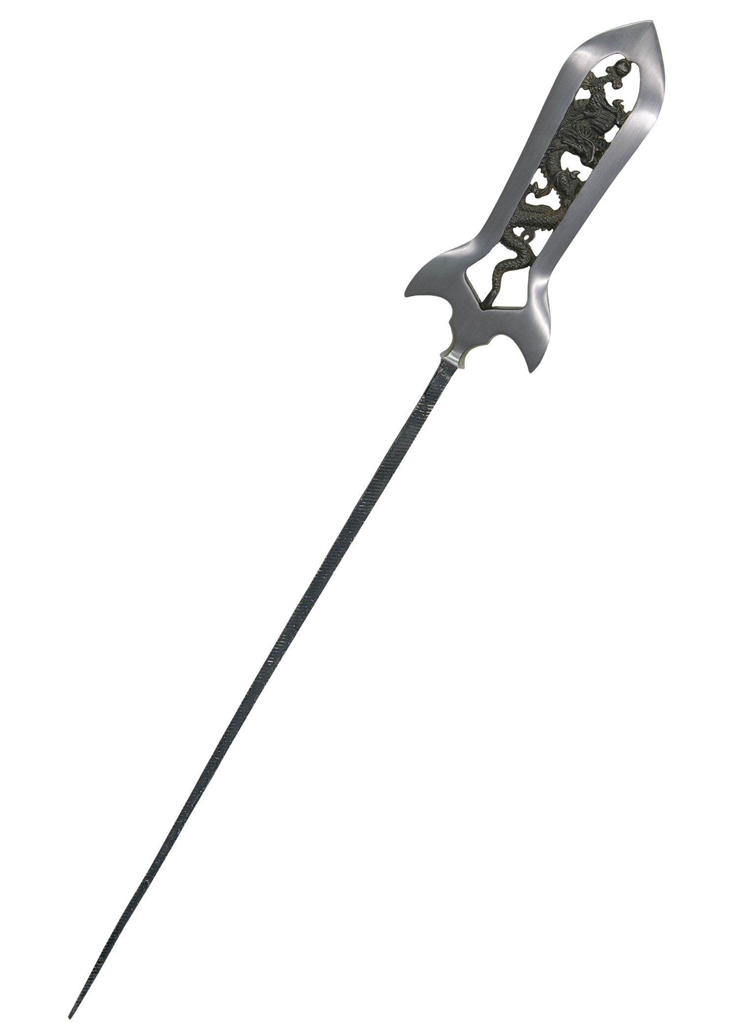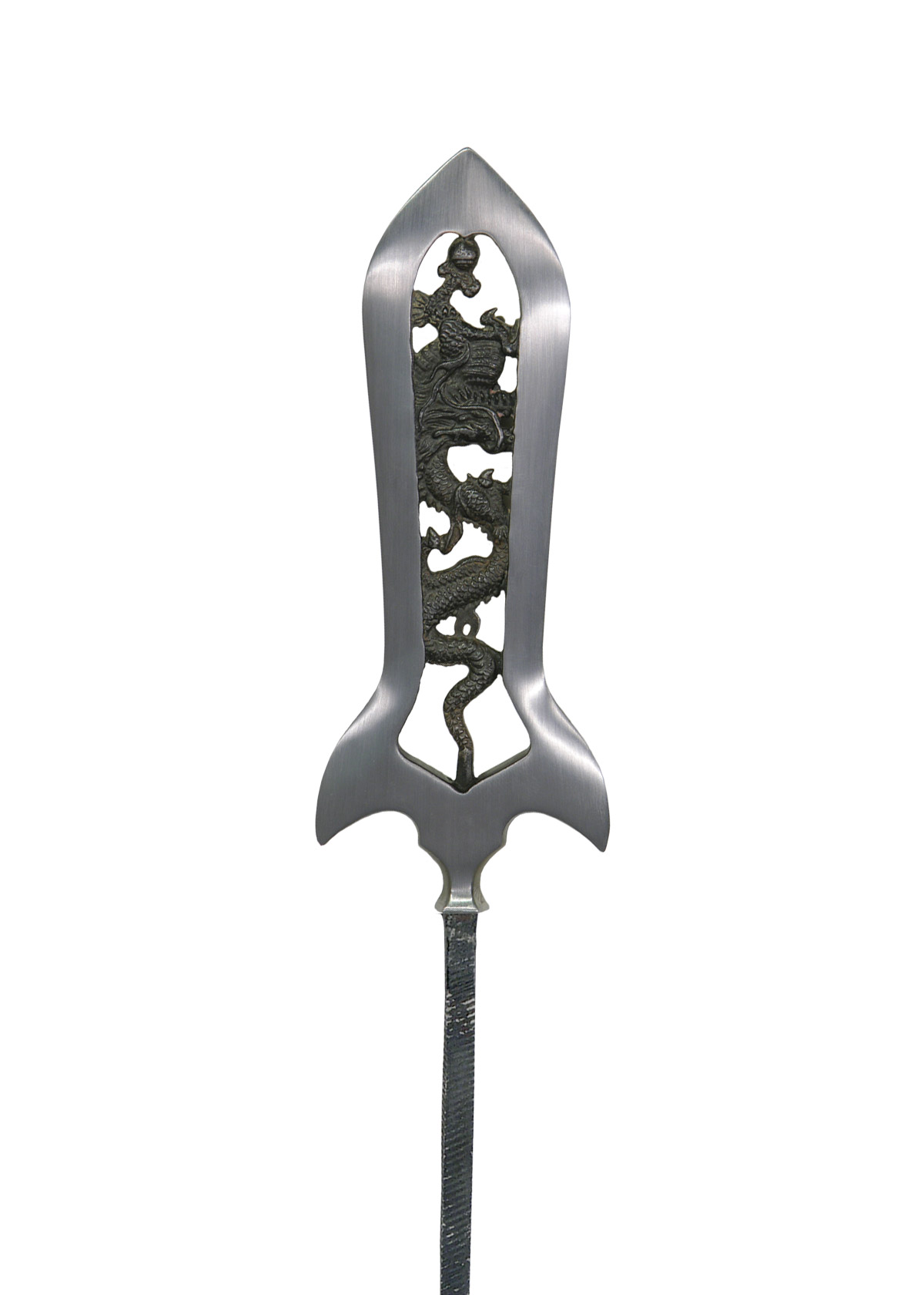 Japanische Pfeilspitzen, genannt Yajiri oder Yanone, hatten viele verschiedene Einsatzmöglichkeiten und Formen. Einige von ihnen waren streng zweckmäßig, während andere reich verziert und dekoriert waren und für Darbietungen und Tempel-Opfergaben genutzt wurden. Es heißt, die Samurai besaßen einen Köcher mit 26 Pfeilen (Ya) und einer von ihnen, genannt Kabura-Ya oder Pfeifender Pfeil, wurde nur genutzt, wenn die Schlacht als verloren galt. Die meisten Pfeilspitzen gehören in bestimmte, breit gefächerte Gruppen. Die hier angebotene Swimming Dragon (dt. schwimmender Drache) Pfeilspitze gehört in das sog. Watakusi-Muster (mit Widerhaken). Die Formen dieser Pfeilspitzen sind für gewöhnlich äußerst dekorativ und verziert, zugleich aber auch furchtbar effizient. Ihre Länge reicht von 2.5 cm bis 16 cm und viele von ihnen sind oft mit ausgesägten Mustern versehen. Diese Pfeilspitzen, ob einzeln oder zu mehreren, sind überragende Sammlerstücke und werden für einigen Gesprächsstoff über Deine Sammlung sorgen.