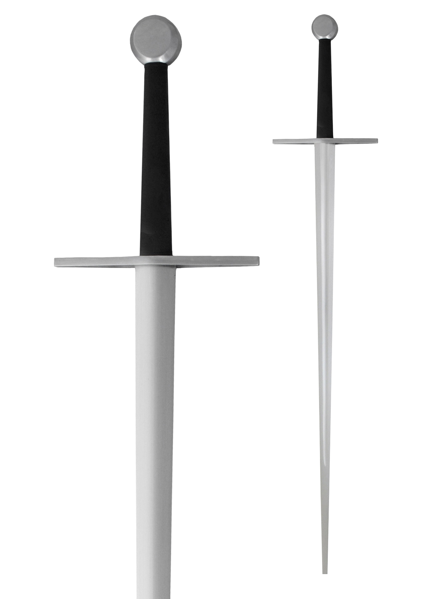 Die Anderthalbhand-Schwerter (Oakeshott Type XVIIIA) sind so konstruiert, dass die scharfe und die stumpfe Versionen beide gleich in der Hand liegen. Sowohl beim Training als auch beim Kampf fühlen sich die Schwerter gleich an und verhalten sich identisch. Bei der stumpfen Version bietet die Klingenspitze die für die Sicherheit erforderliche Flexibilität. Der rundgeformte Knauf ist so konzipiert, dass er bei Bedarf als Griff für die zweite Hand dienen kann, und die geradlinige Parierstange bietet einen hervorragenden Schutz für die Hand.