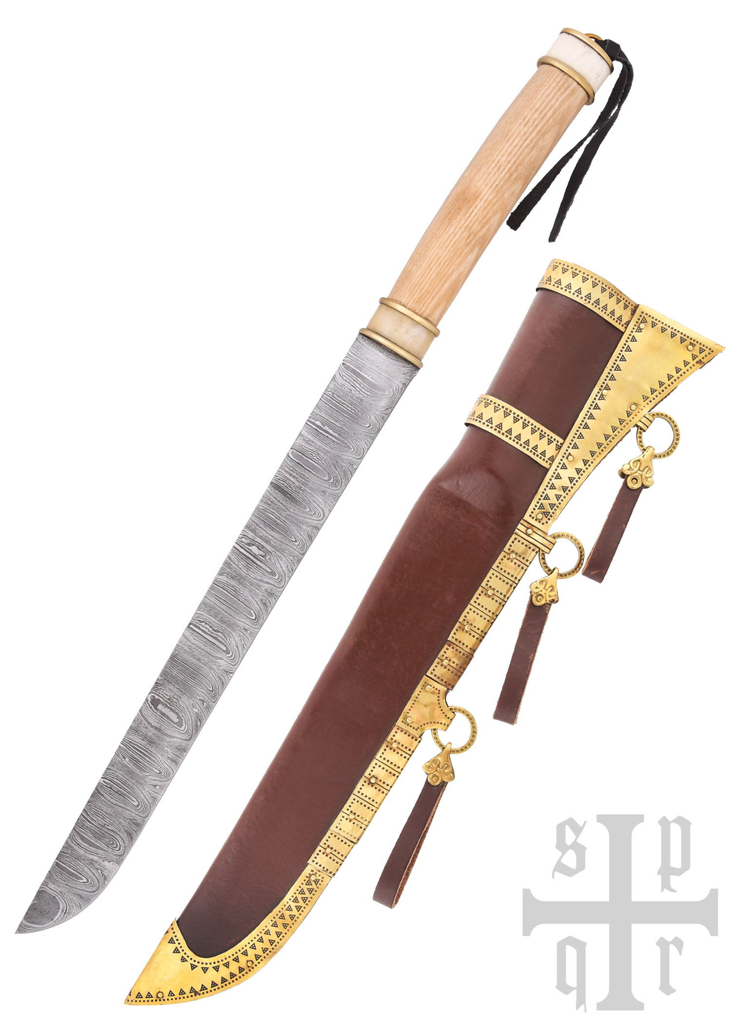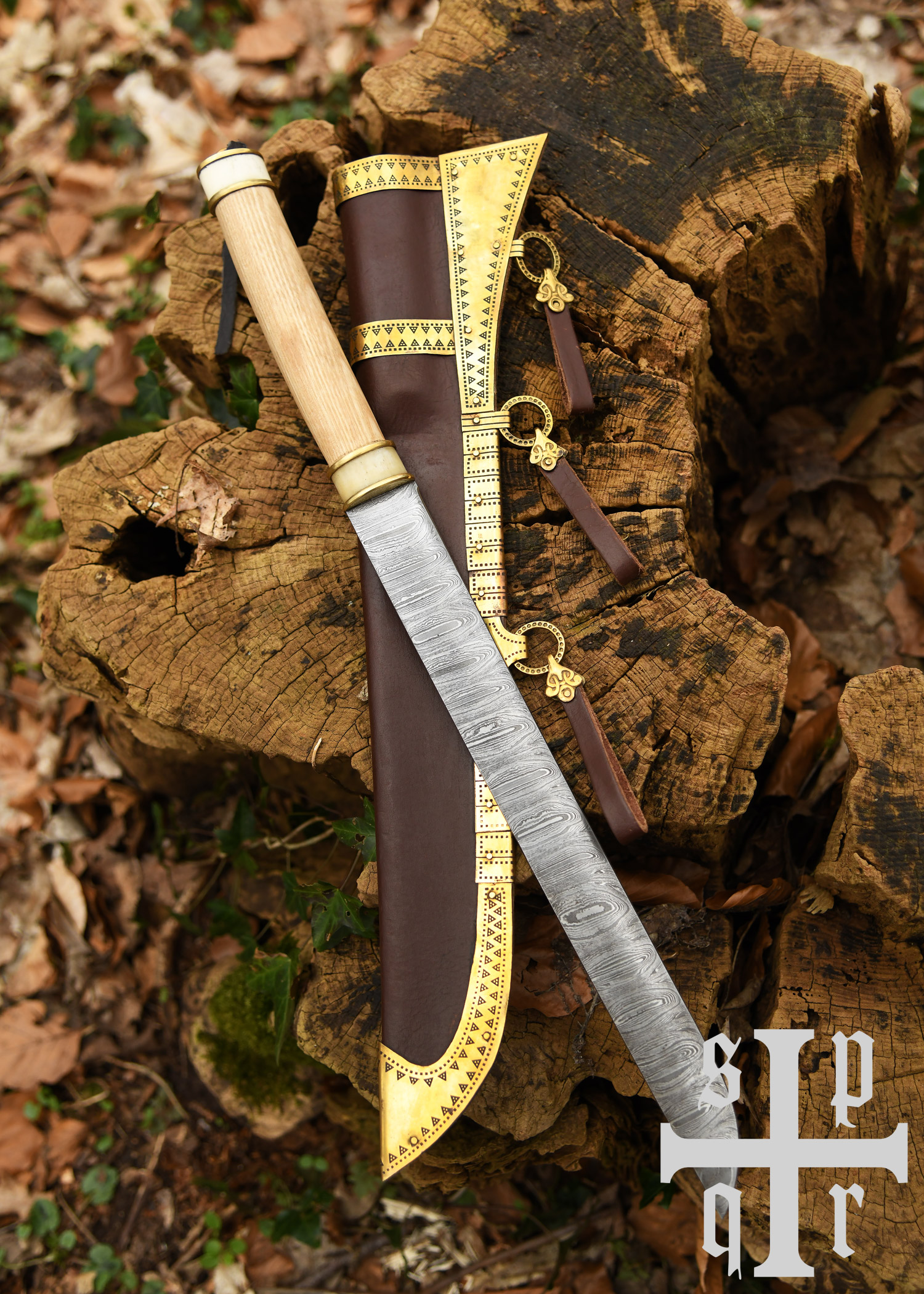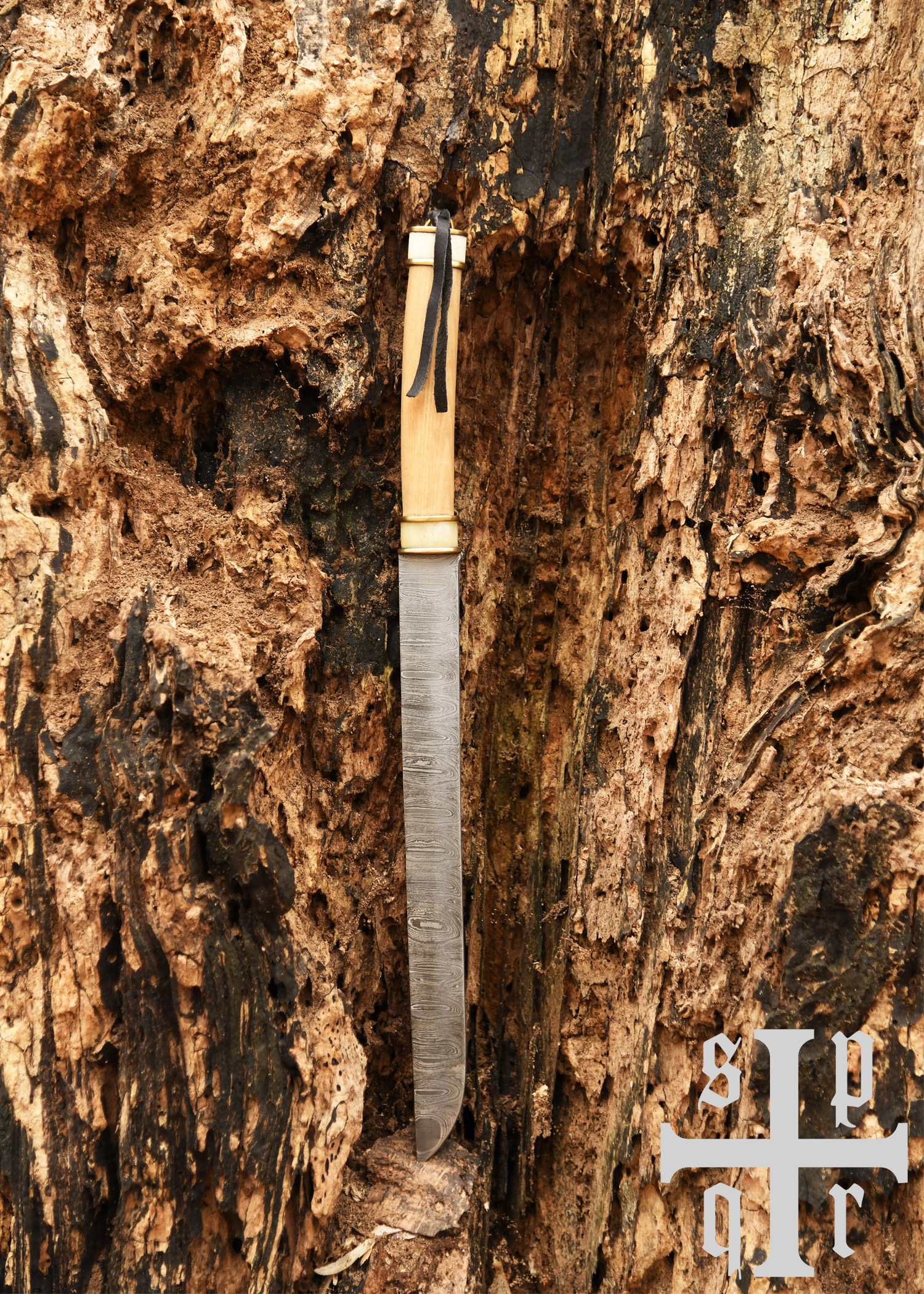 Wikingersax mit Damastklinge und Holz-/Knochengriff