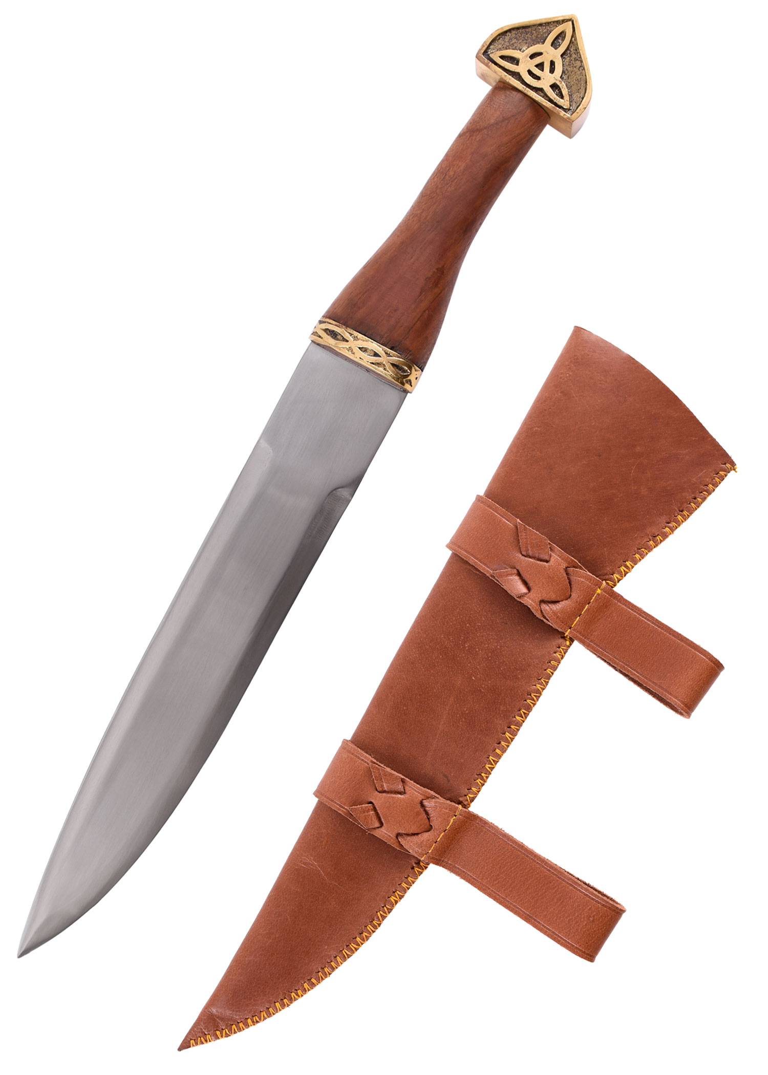 Am Ende des Hartholzgriffes befindet sich ein reich verzierter Knauf aus Messing.